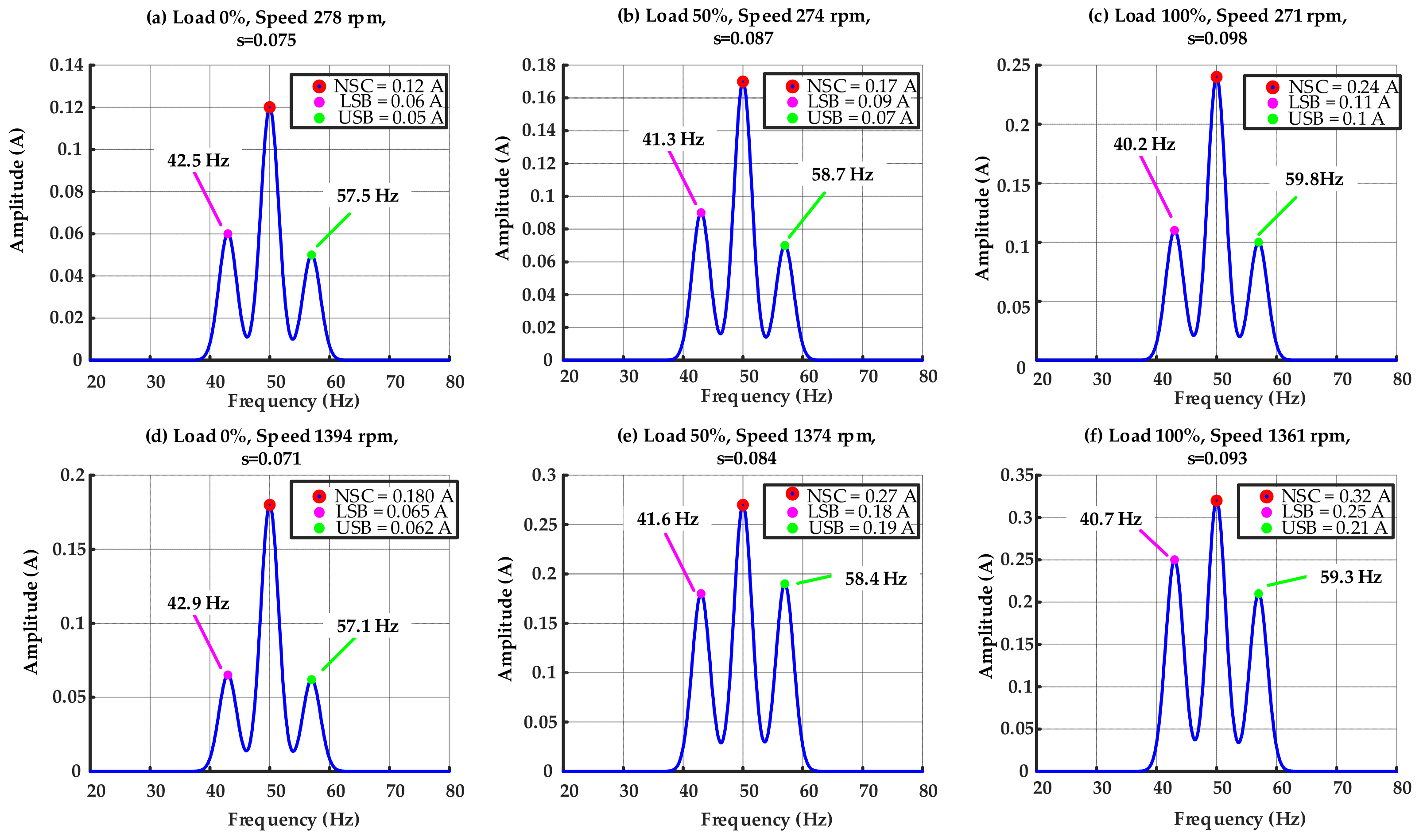 - Thorough experimental validation of the NSC-based diagnostic methodology on both healthy and faulty motors, showcasing enhanced sensitivity, resilience to disturbances, suitability for real-time fault monitoring and their potential for incipient BRB fault detection.
