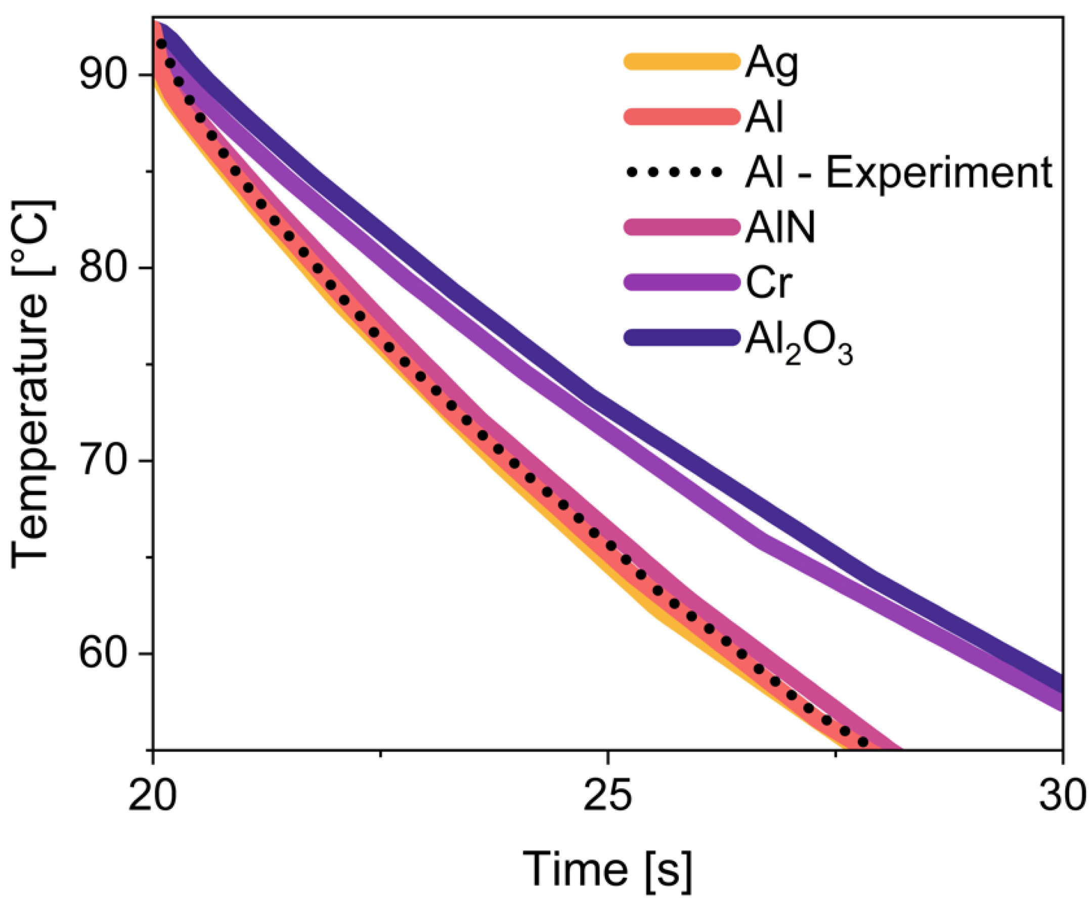 - MatWeb. Aluminum Nitride (AlN)-Material Property Data; Specific Heat Capacity: 740 J/kg·K. Available online: https://www.matweb.com/search/datasheet.aspx?matguid=1faaabab5cac40c08a823d1b0083e2d1 (accessed on 5 July 2024).
