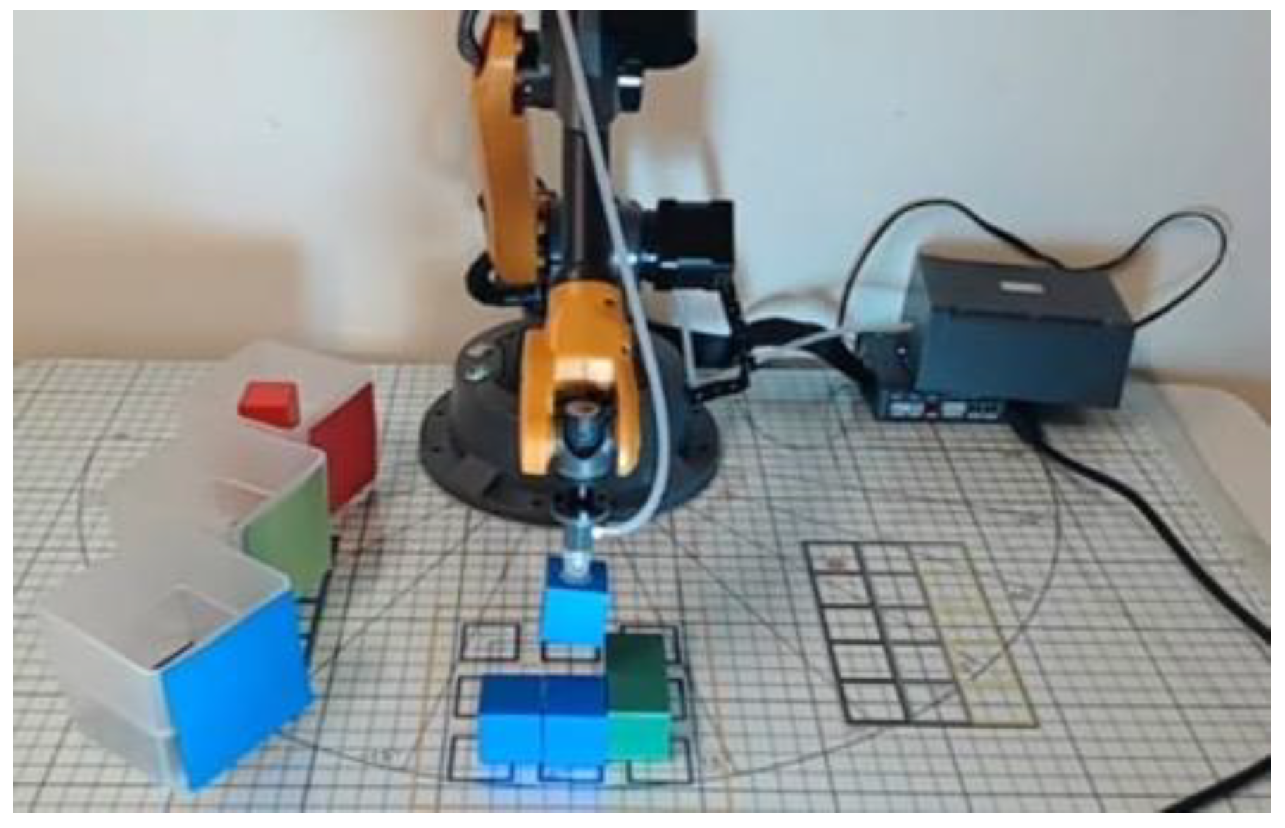 Constructivist and experiential learning theories provide the theoretical foundation for integrating robotic arms in programming education. Constructivism posits that learners actively construct knowledge through interaction with the environment and reflection on their experiences [51]. In the context of educational robotics, this approach enables students to build understanding by designing, programming, and testing robotic actions, thereby linking abstract concepts to tangible outcomes. Similarly, experiential learning theory emphasizes the cyclical process of concrete experience, reflective observation, abstract conceptualization, and active experimentation [52].