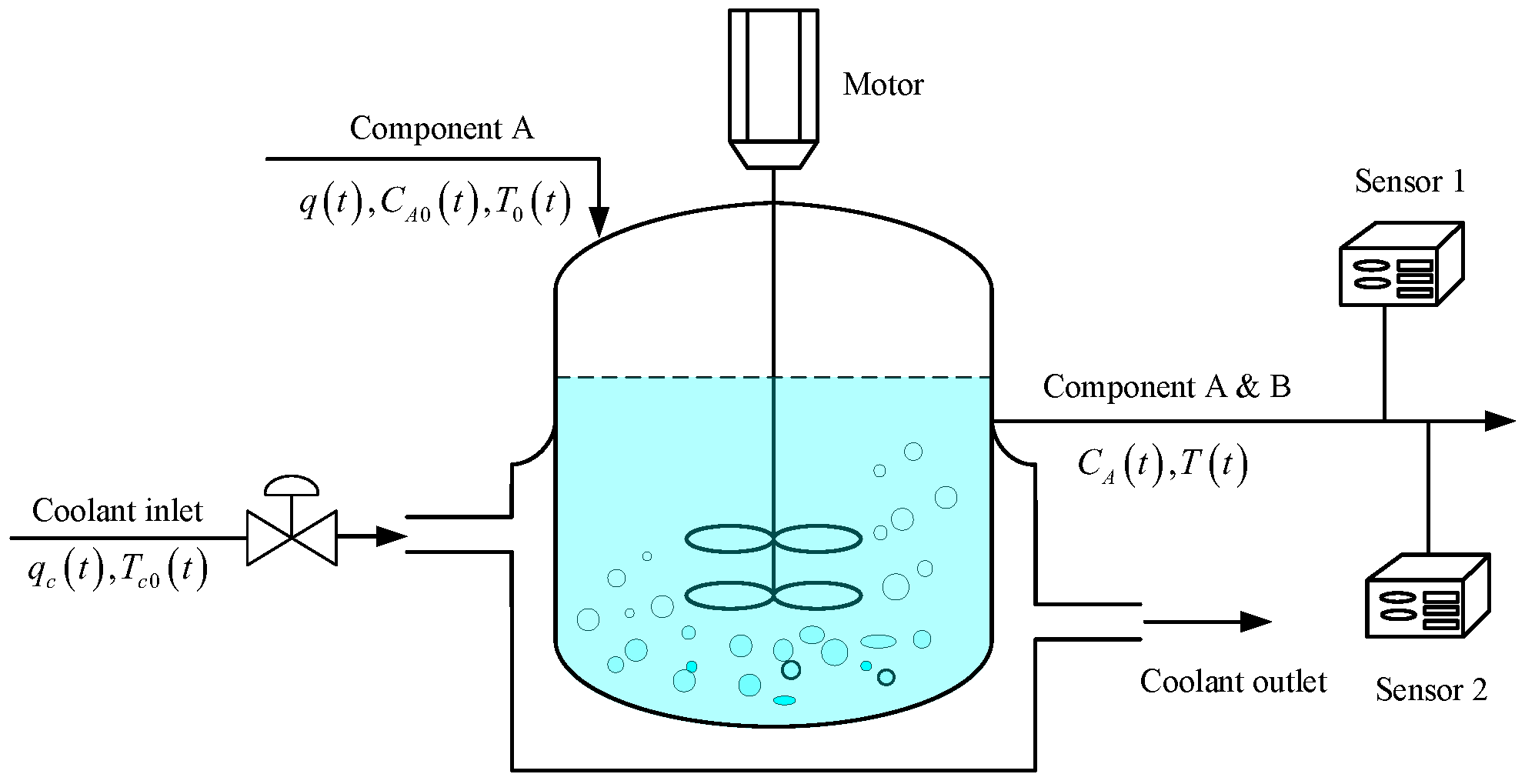 The continuous stirred tank reactor (CSTR) is a constant-volume, exothermic, irreversible, and nonlinear system. Its dynamic behavior follows the reaction mechanism, with the core governing equations referenced from [