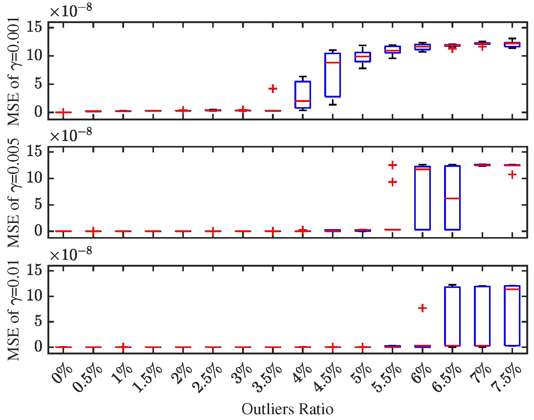 The outlier proportion varies from 0% to 7.0% with an increment of 0.5%.