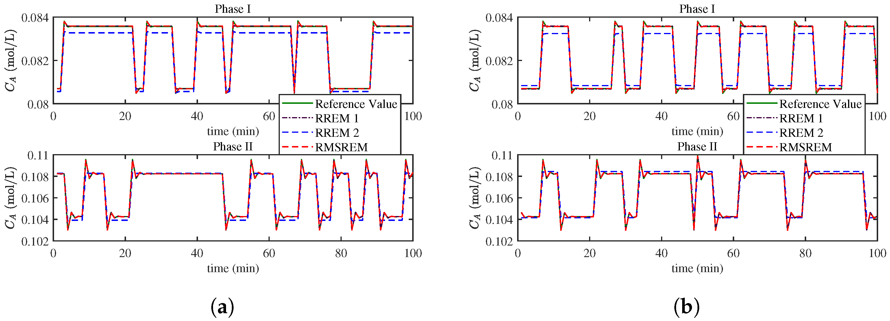 , are selected to simulate the dynamic changes of Component A concentration, thereby verifying the adaptability of the RMSREM algorithm. The definitions and nominal values of other parameters in governing equations can be found in [
