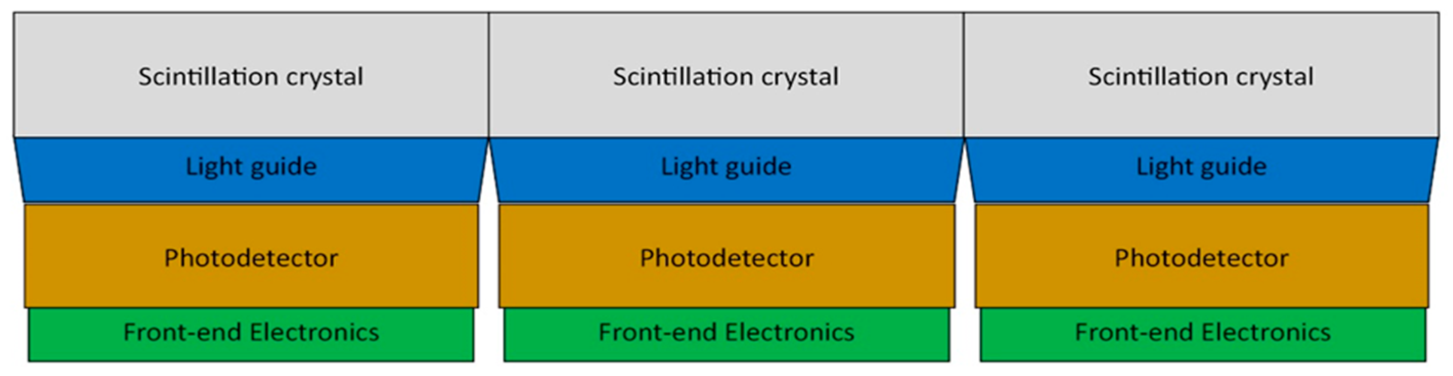 27. Raylman, R.R.; Vaigneur, K.; Stolin, A.V.; Jaliparthi, G. Arrays of segmented, tapered light guides for use with large, planar scintillation detectors. IEEE Trans. Nucl. Sci. 2015, 62, 694–698. [Google Scholar] [CrossRef] [PubMed]