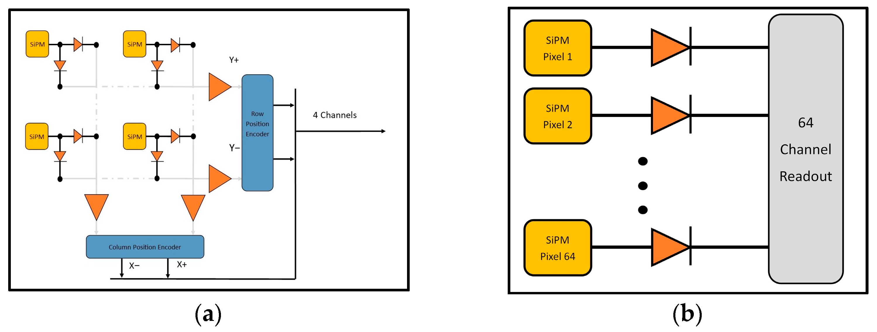 8. Park, H.; Yi, M.; Lee, J.S. Silicon photomultiplier signal readout and multiplexing techniques for positron emission tomography: A Review. Biomed. Eng. Lett. 2022, 12, 263–283. [Google Scholar] [CrossRef]