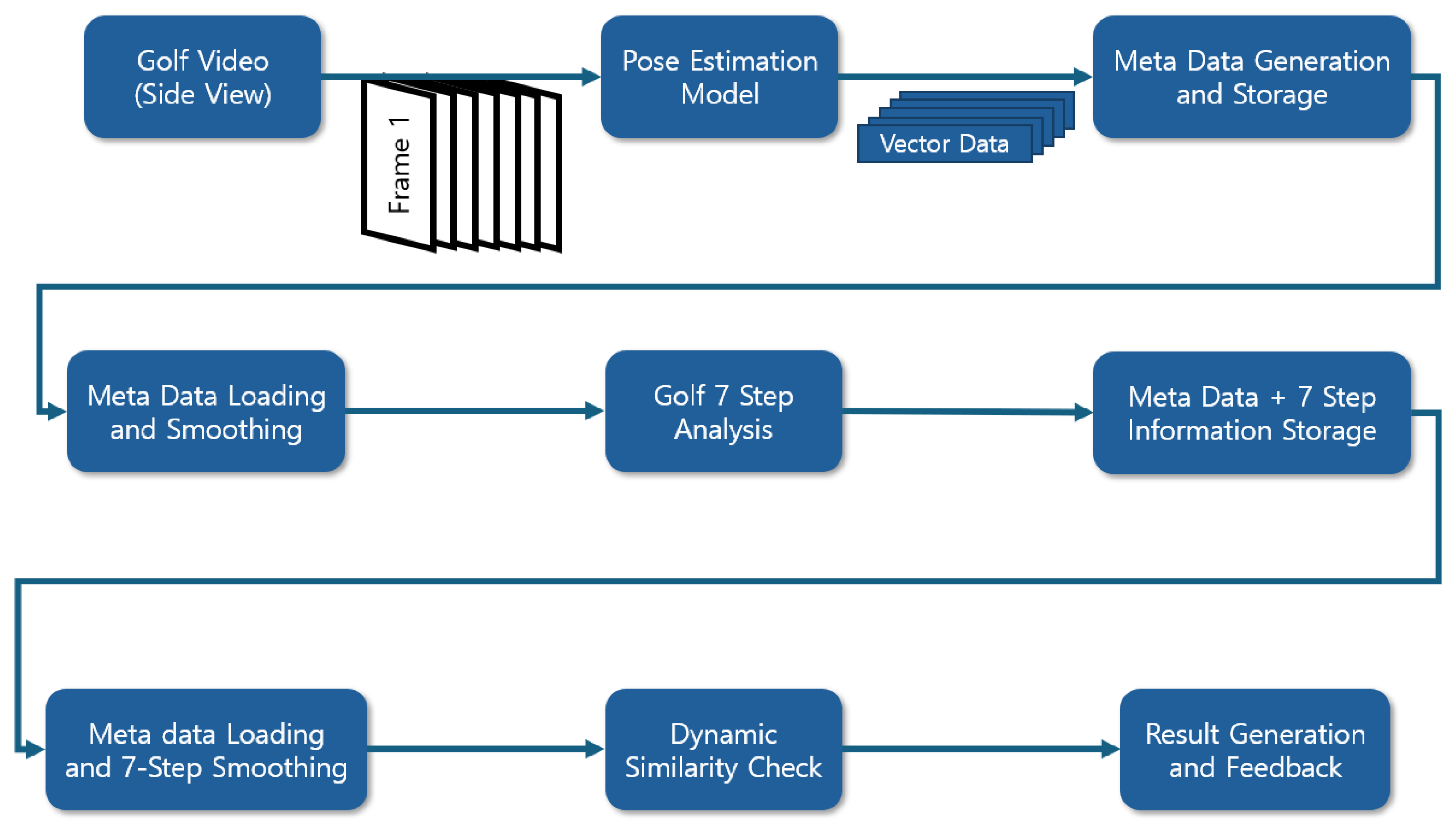 Driven by improvements in computing power and the rapid development of deep learning, image-based human pose estimation has matured into a viable tool for motion analysis [1,2,3,4,5]. Compared with approaches that rely on wearable sensors, vision-based methods can lower costs, improve mobility, and reduce setup barriers, enabling the extraction of rich 2D/3D skeletal data. As these technologies have been commercialized, a variety of applications leveraging pose recognition have emerged—for example, interactive sports training platforms such as SpotU and A-Squat [6,7]. Consequently, motion analysis and comparison using 2D/3D data have advanced across many fields, including golf swing recognition [8].