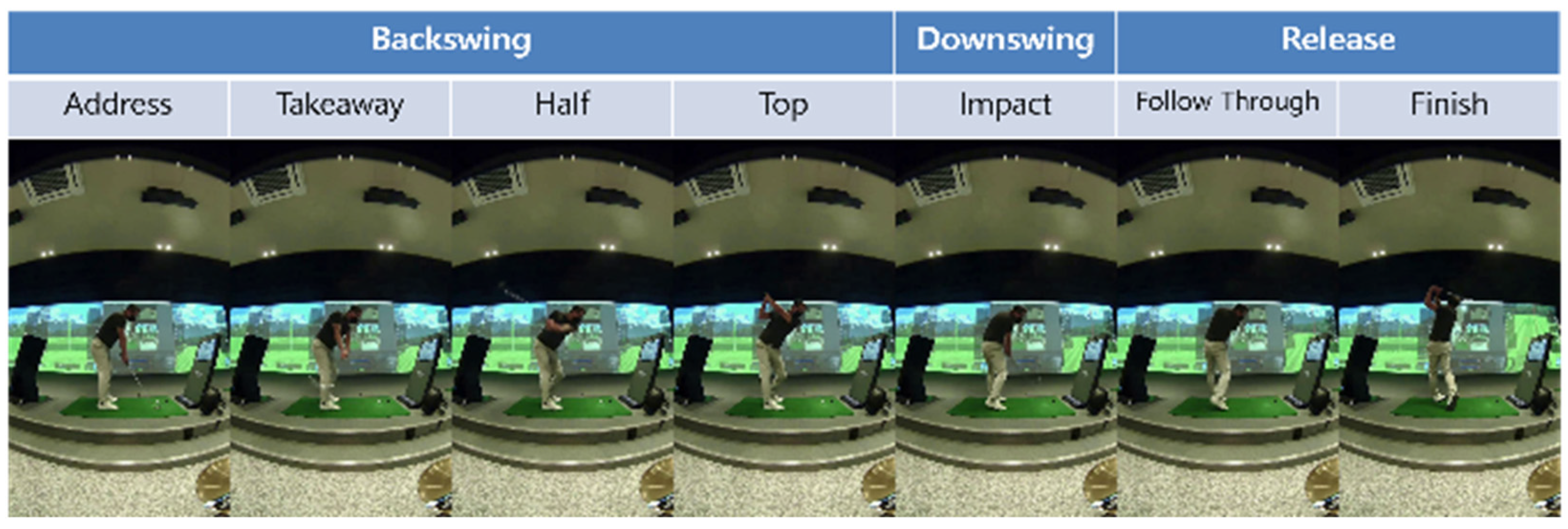 Figure 2. Seven-phase golf swing definition with annotated key positions.