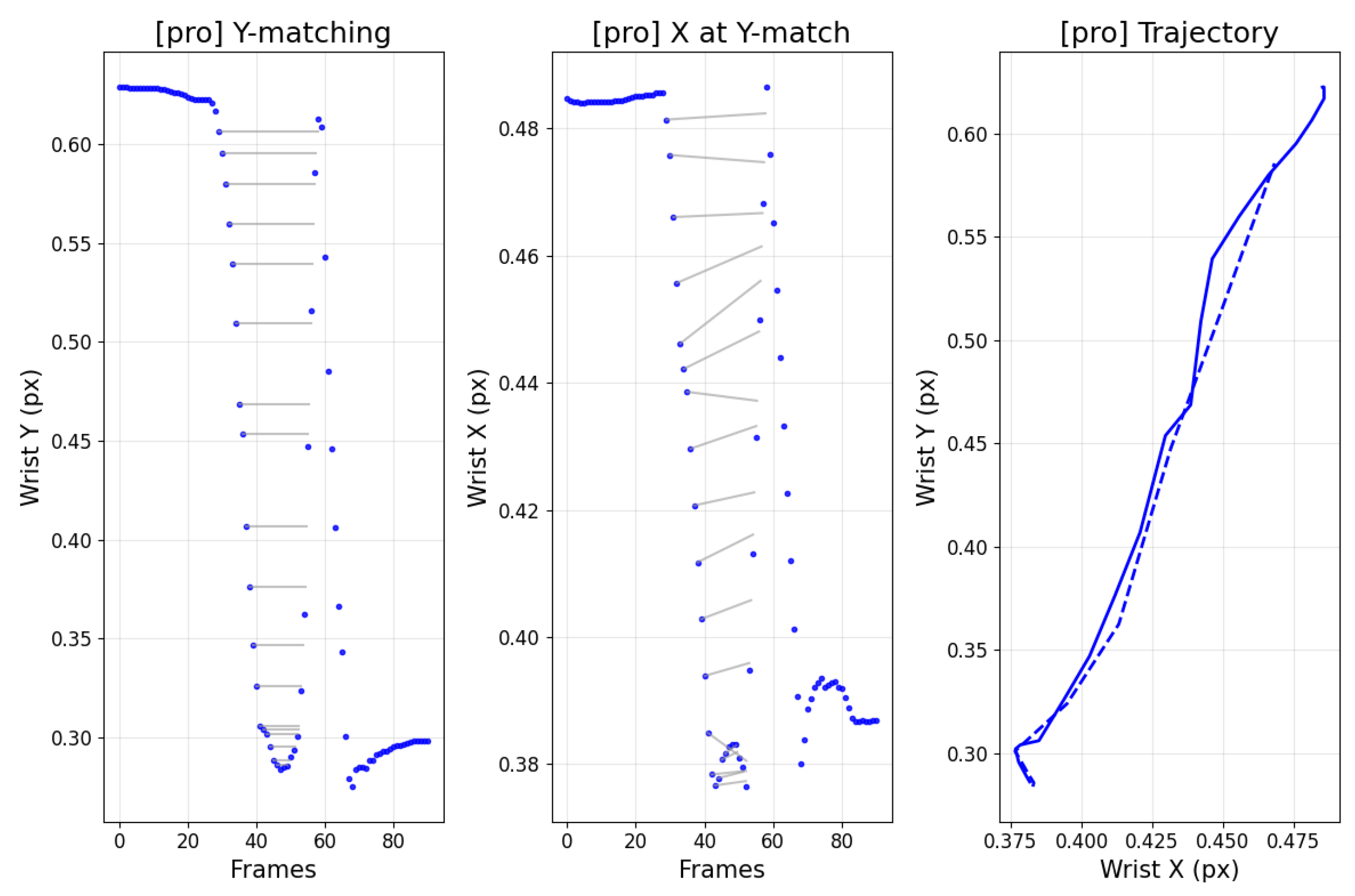 Figure 3. Representative side-view keypoint trajectories used for automatic phase boundary detection (shoulder rotation, wrist velocity peaks).