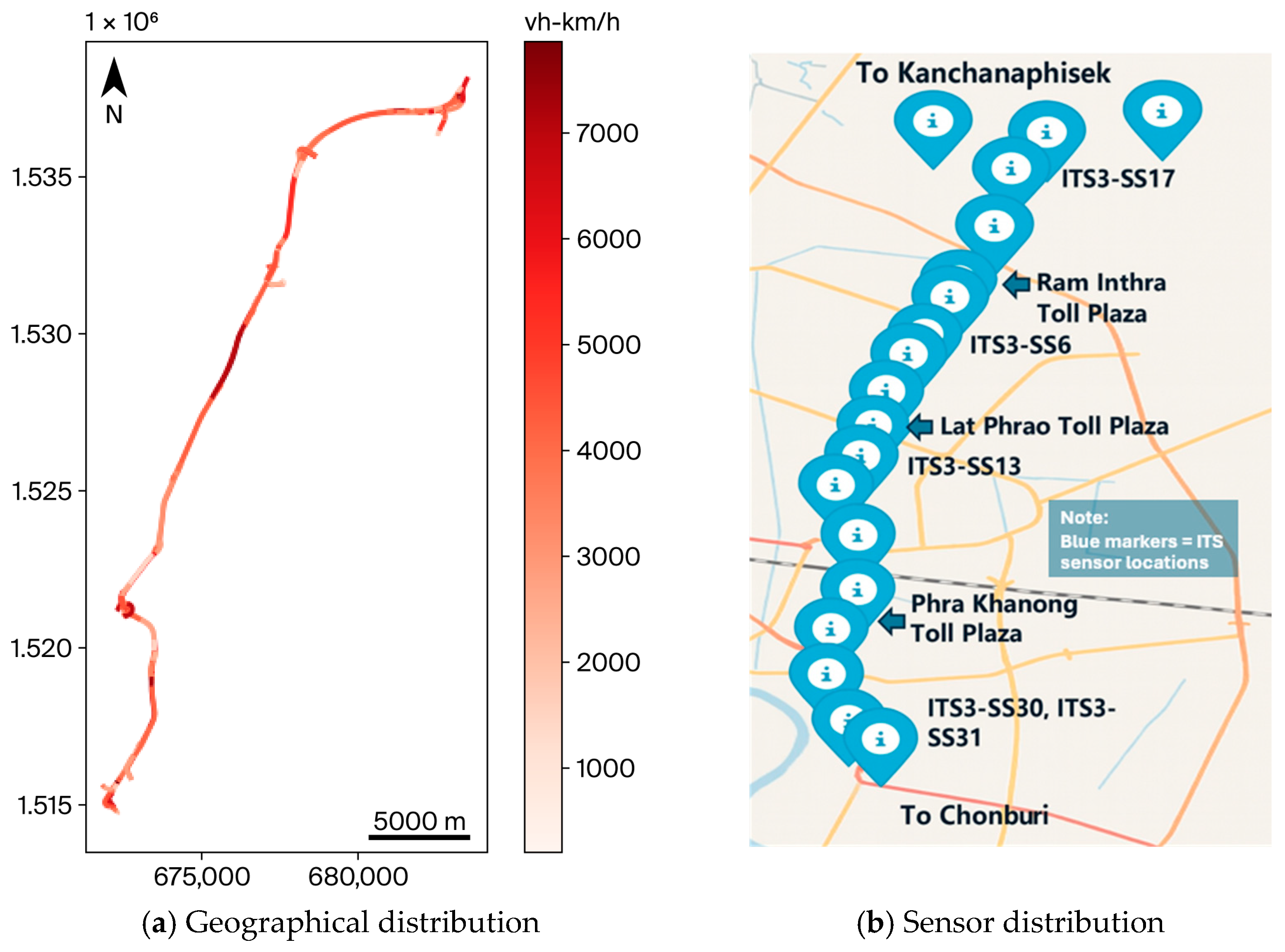 - Mon, E.E.; Ochiai, H.; Komolkiti, P.; Aswakul, C. Real-World Sensor Dataset for City Inbound–Outbound Traffic Estimation and Short-Term Prediction. Sci. Data 2022, 9, 357. [Google Scholar] [CrossRef]