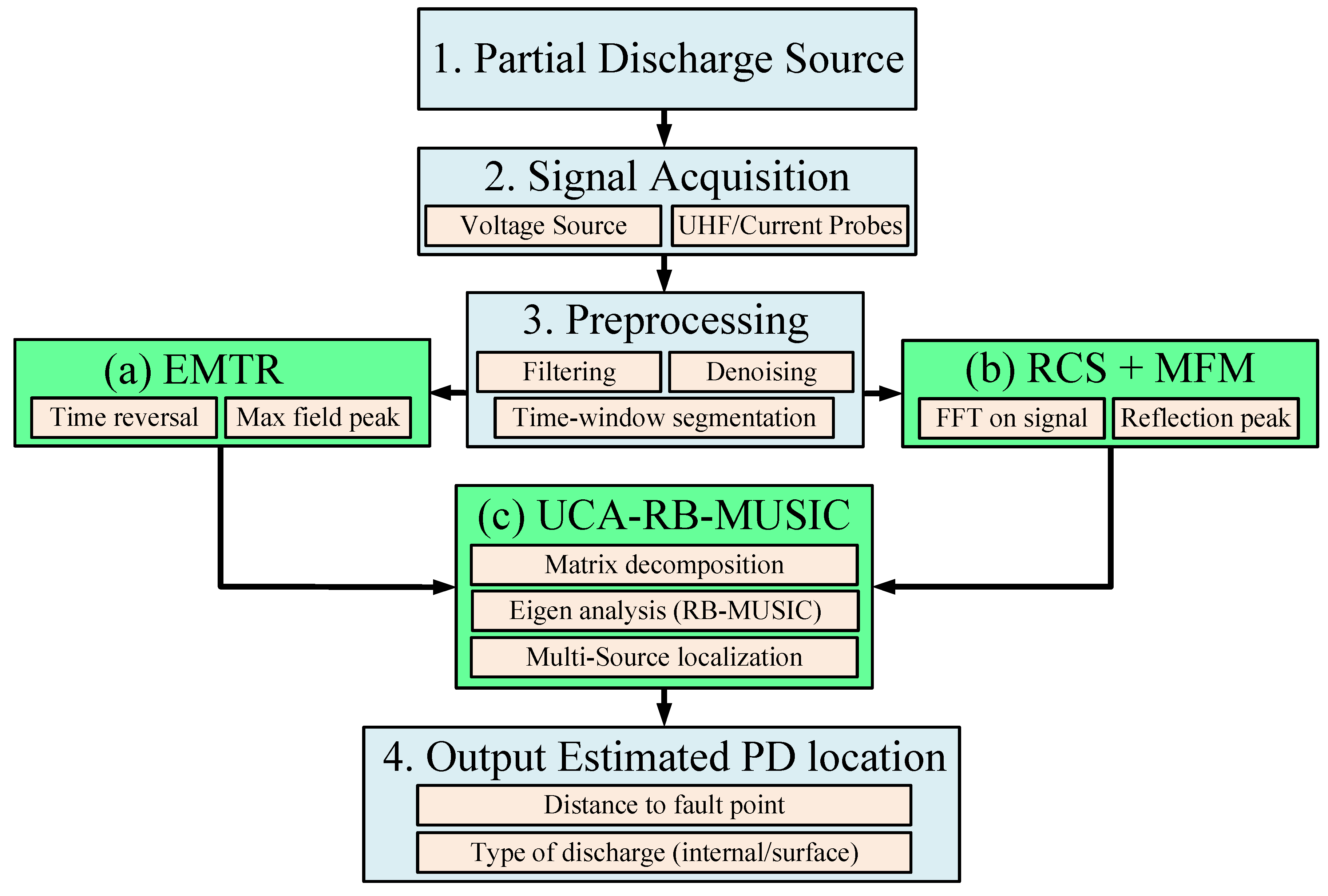 90] emphasized the need for accurate modeling of PD pulse propagation, particularly in XLPE cables with multiple layers. Delay and attenuation characteristics are critical for differentiating multiple PD sources, and