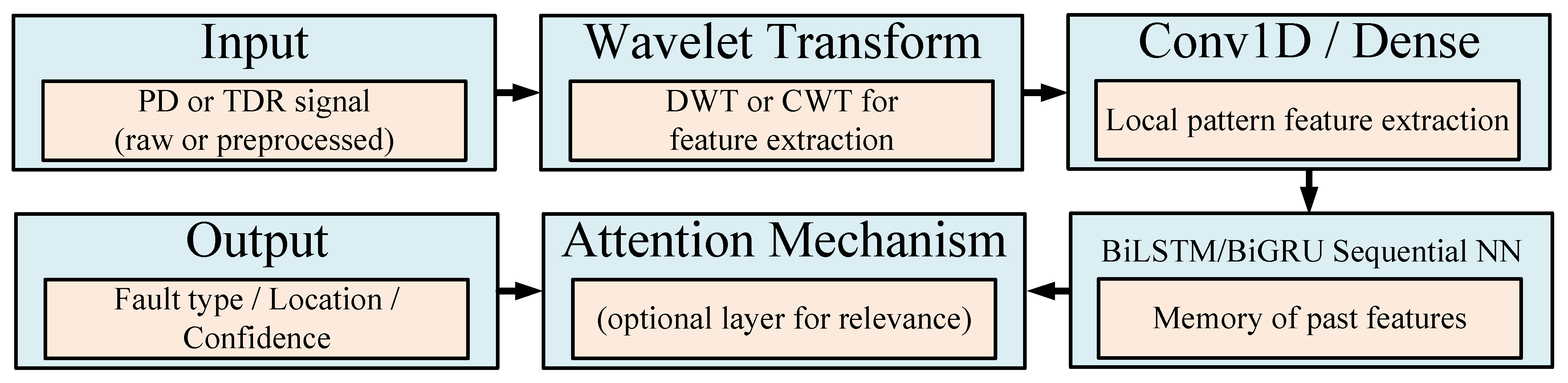 28], an incremental learning model based on DCNNs was used for generalizable cable diagnostics. The model was trained on evolving datasets and successfully detected incipient insulation faults and thermal degradation under distribution network scenarios.