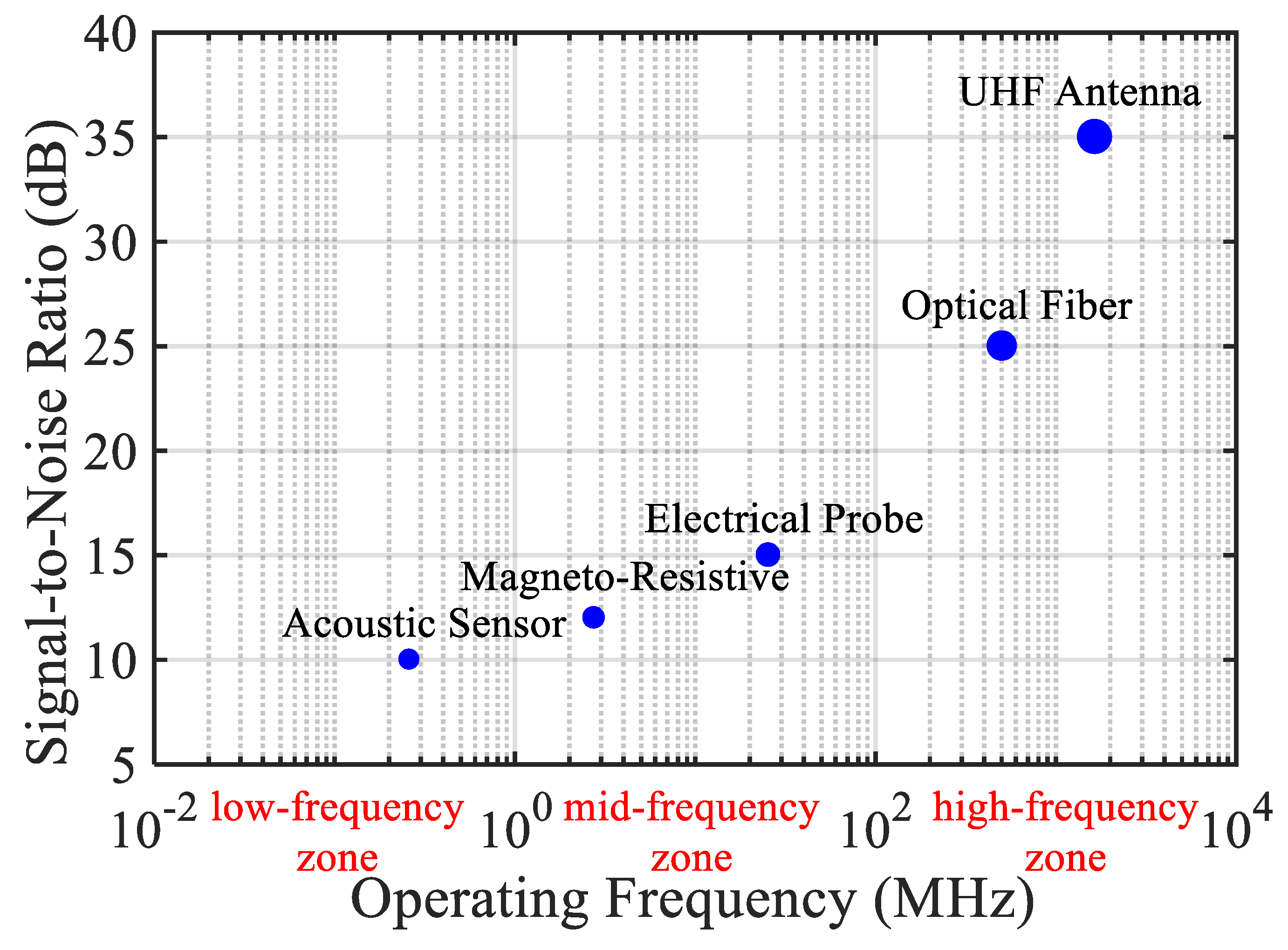 Bandwidth Selection: Match sensor bandwidth to expected PD spectrum (typically 50–500 MHz for UHF; 1–20 MHz for acoustic/electrical).