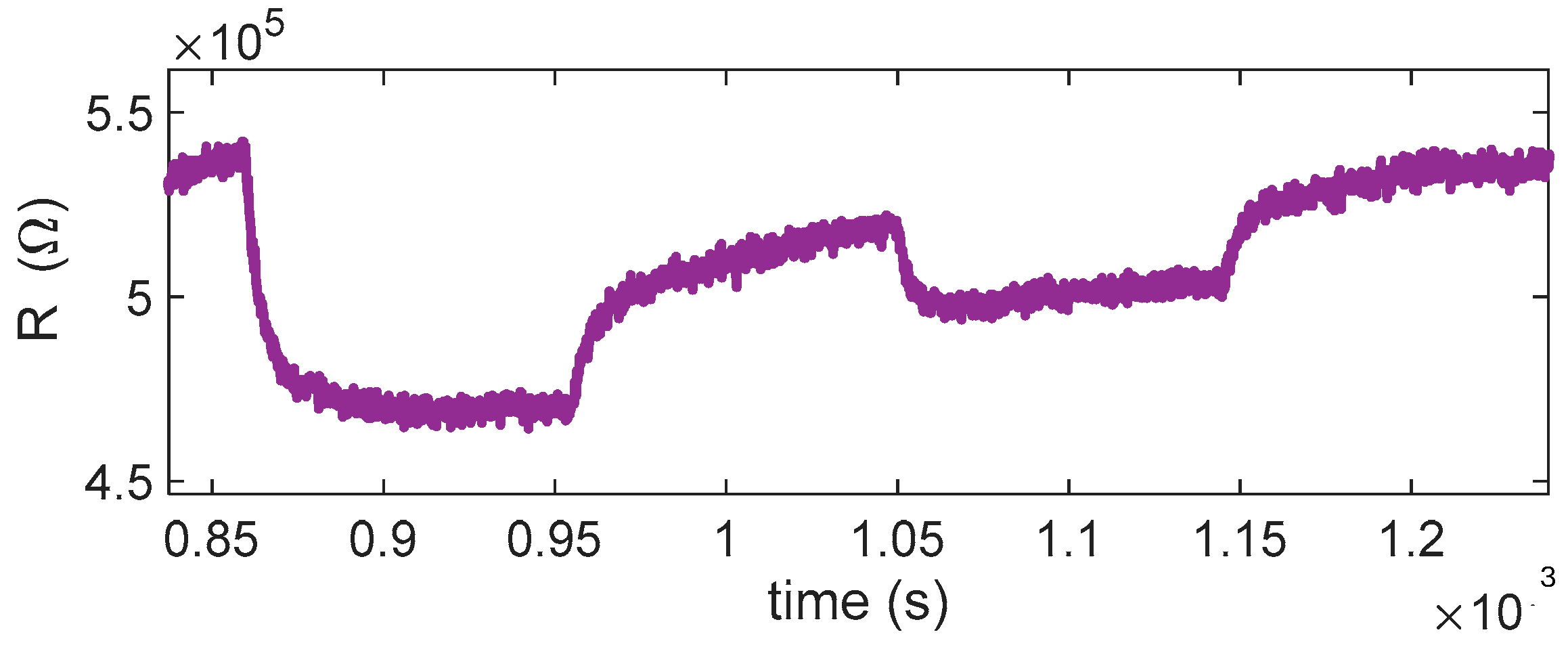 The planning and execution of the tests must be accurate, as they are often lengthy and time-consuming. In this work, we evaluate the sensor response by exposing it for a fixed duration (15 min) to gas mixtures containing different concentrations of the target gas, diluted in synthetic air under either dry conditions or in the presence of water vapor. Each exposure phase is followed by a recovery phase in clean air, which allows the sensor to approach its baseline resistance. An example of the characterization results obtained following this protocol is shown in