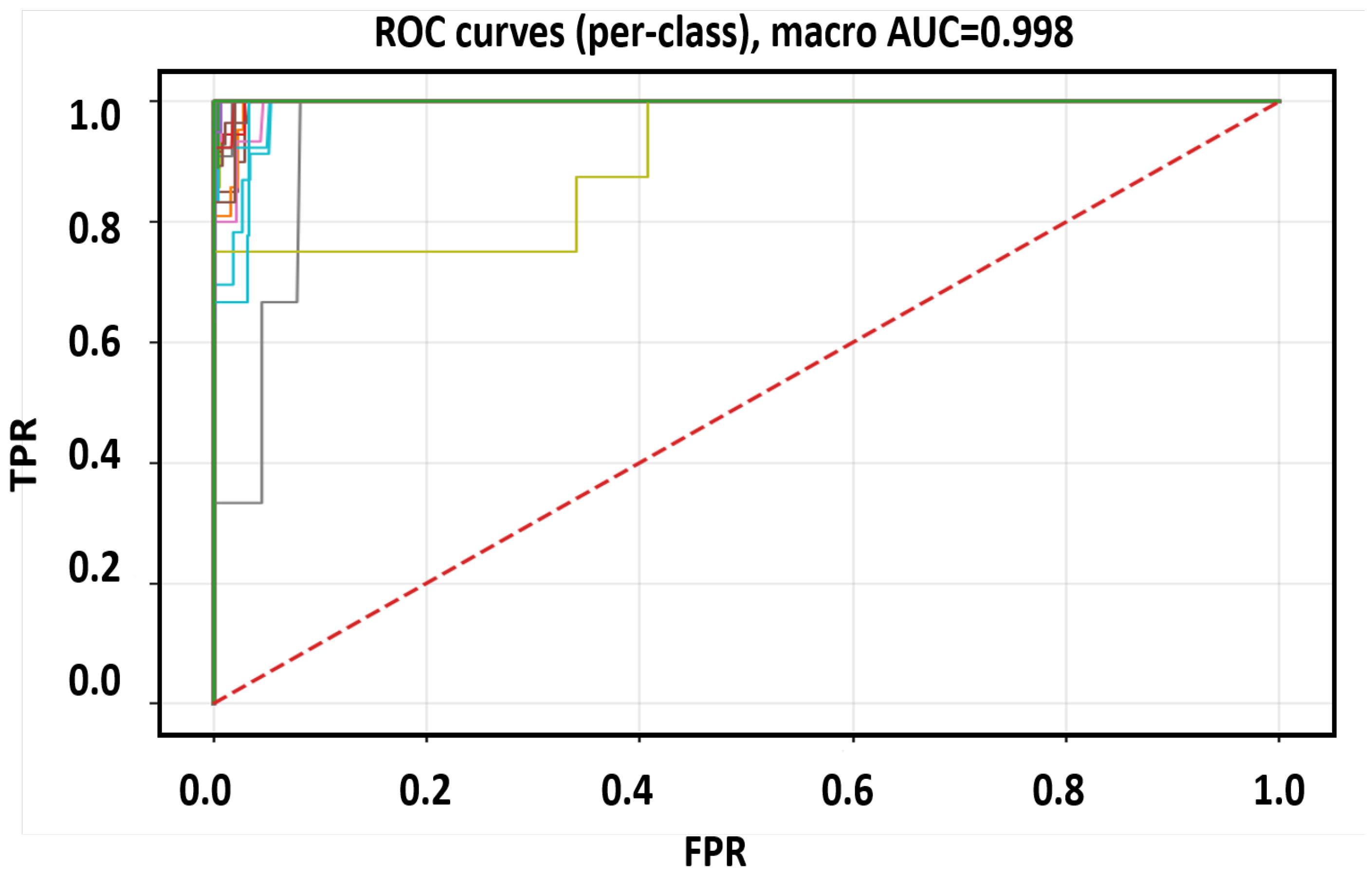 Figure 11. Multi-class ROC curves of the RF baseline showing consistent separability across range classes.
