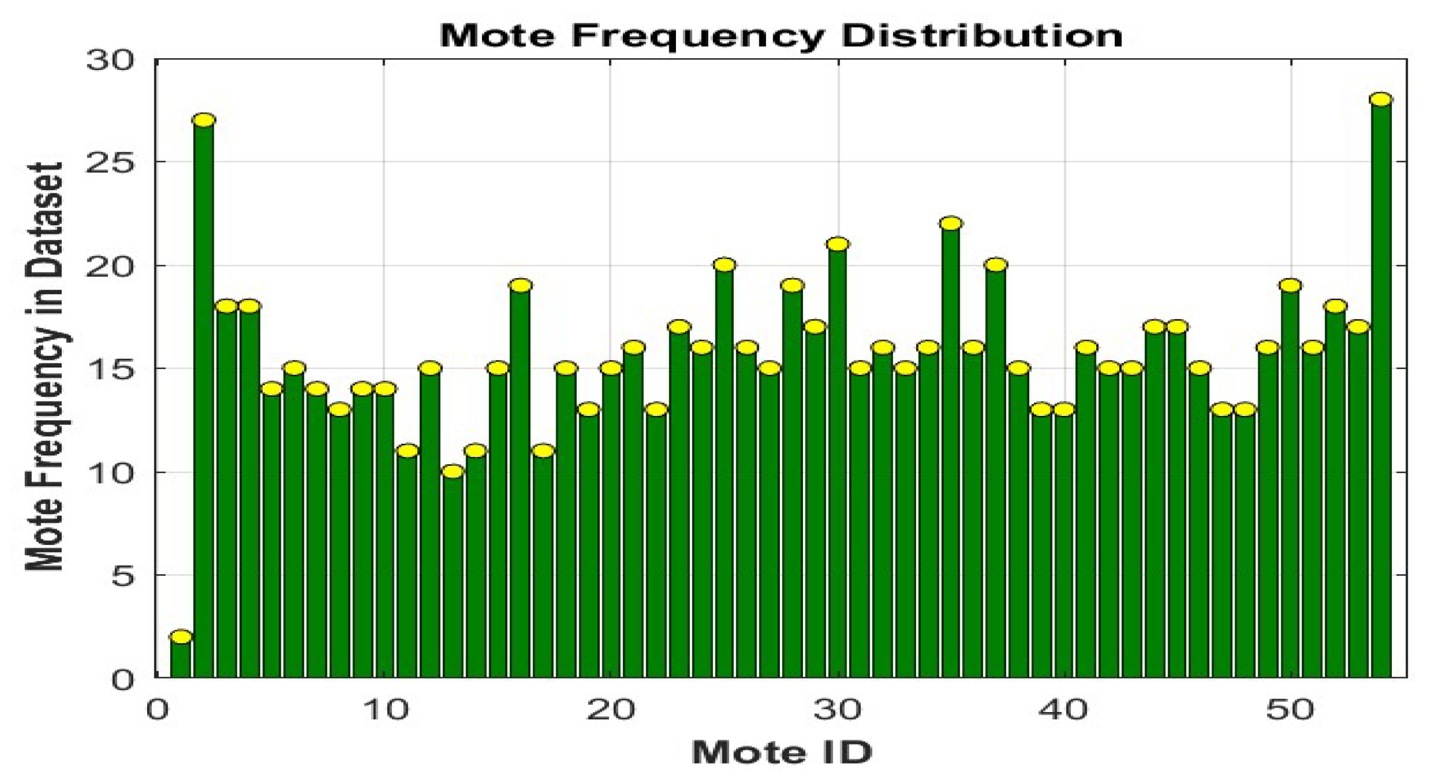 Figure 3. The measurement frequencies of 54 sensors.