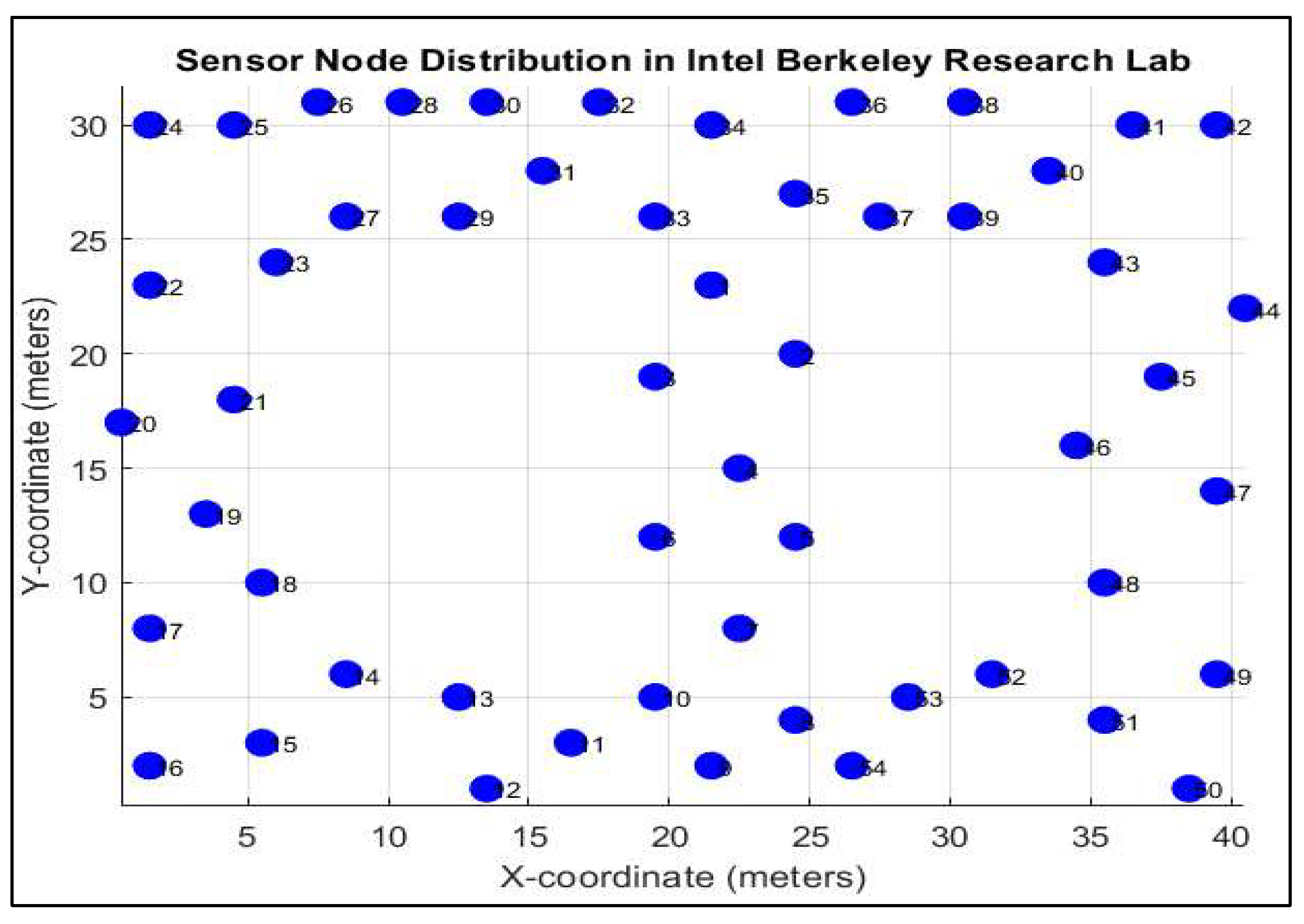 Figure 4. Sensor nodes distribution in Intel Berkeley Research Lab.