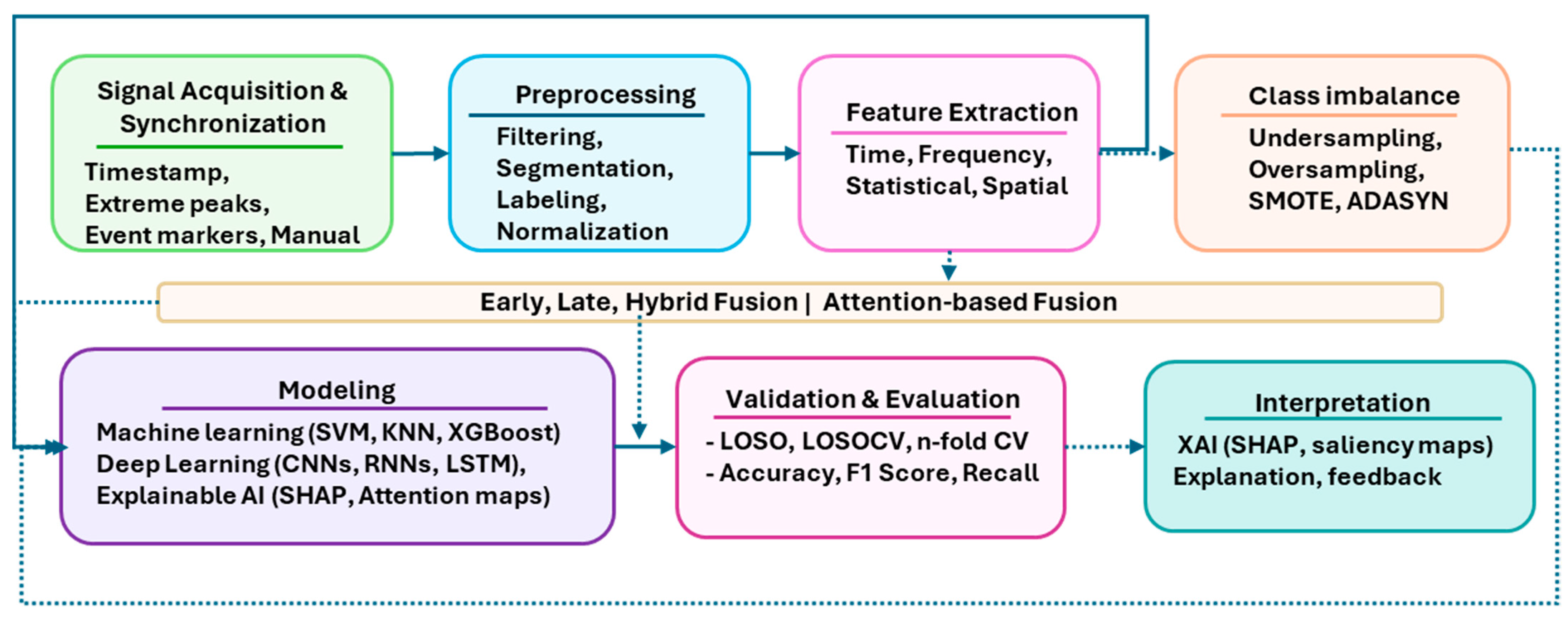 - Shen, J.; Wu, J.; Liang, H.; Zhao, Z.; Li, K.; Zhu, K.; Wang, K.; Ma, Y.; Hu, W.; Guo, C.; et al. Physiological signal analysis using explainable artificial intelligence: A systematic review. Neurocomputing 2025, 618, 128920. [Google Scholar] [CrossRef]