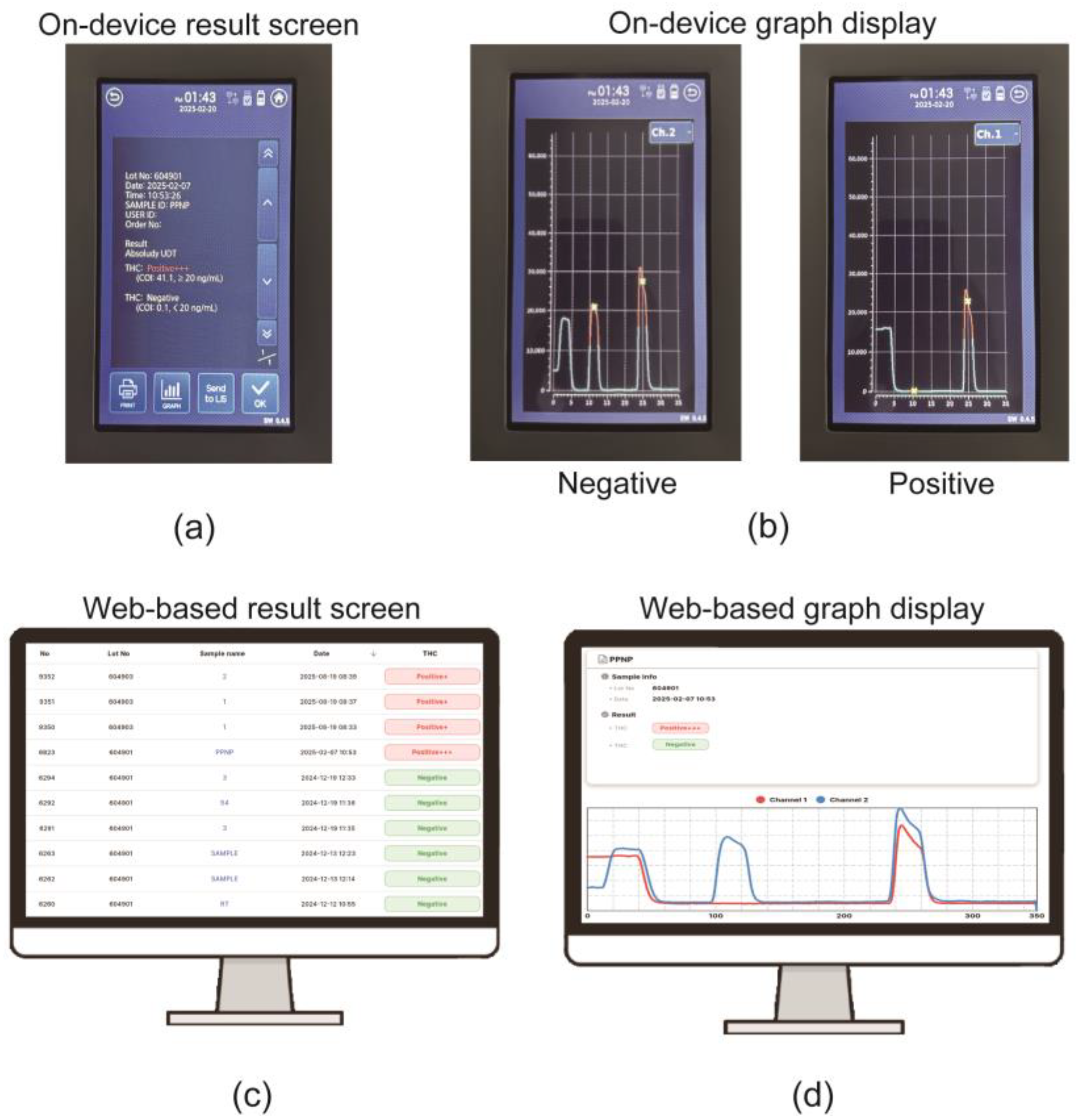 Figure 3c) is not the device’s intended function and would be scientifically inappropriate. Such conversion would reintroduce the sample-specific matrix effects that the T/R normalization ratio was specifically designed to mitigate. Therefore, the device operates optimally within its designed semi-quantitative diagnostic framework (Negative, +, ++, +++).