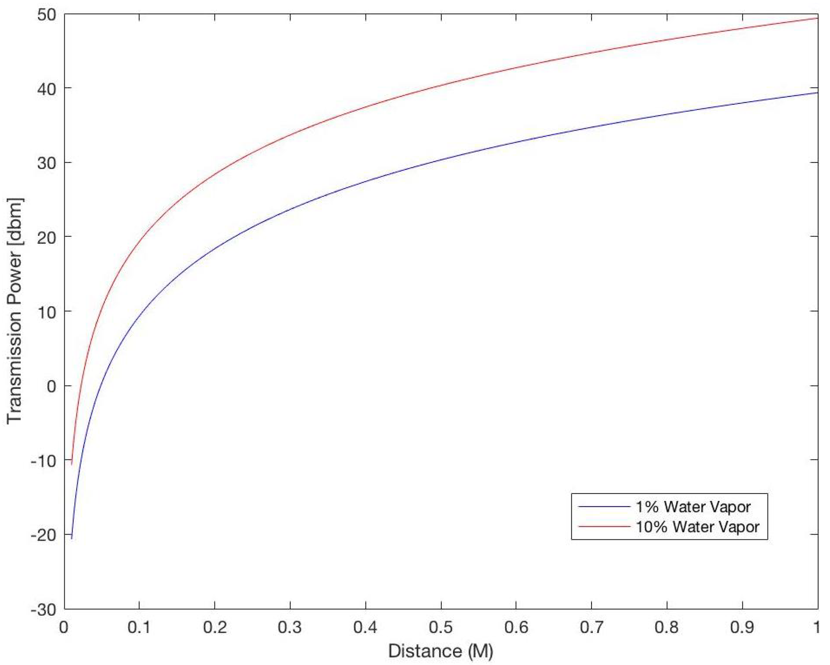 | Transmission Range | 300 m for 900 MHz and 64 m for 2.4 GHz | Depends on the medium conditions, 0.03 m in medium with 1% water vapor using J |