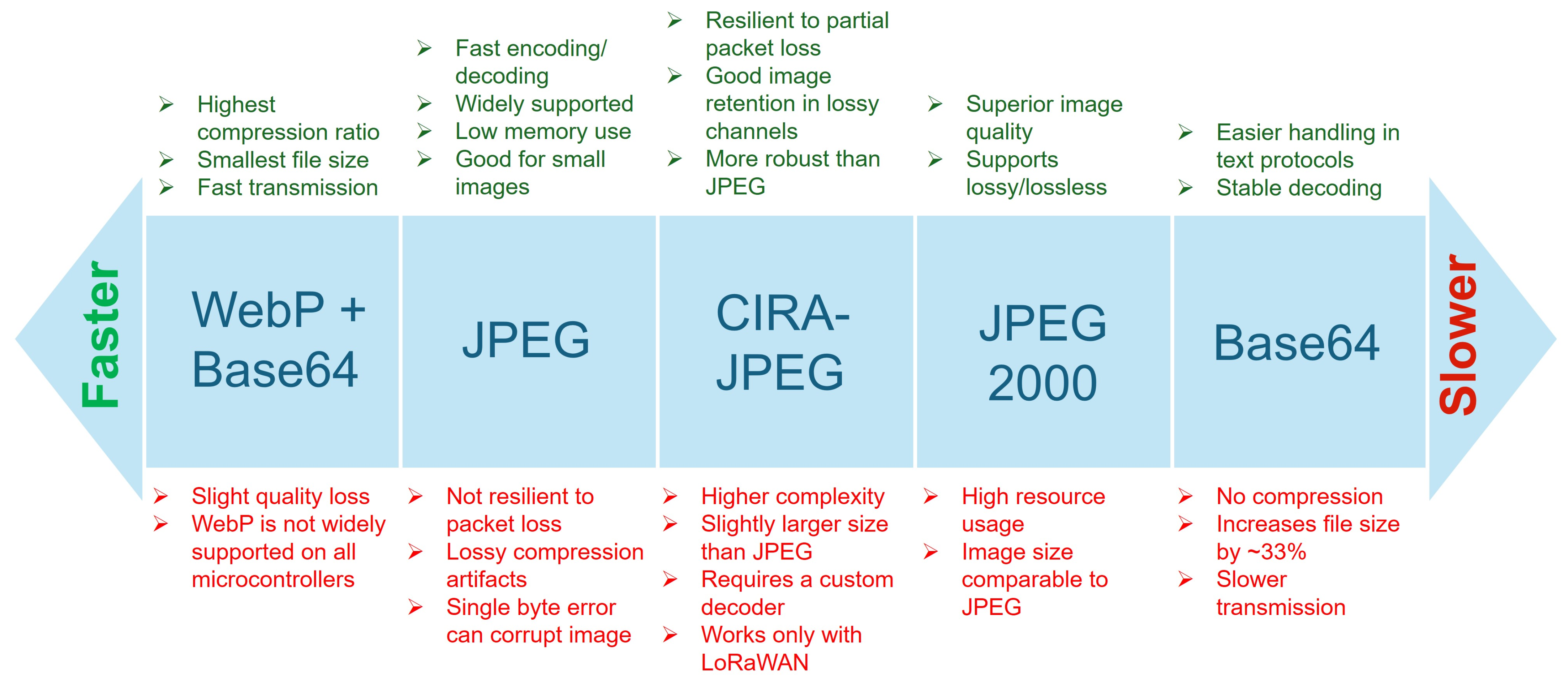 - Compression Strategies: Reducing image size to fit within LoRa’s throughput and airtime constraints. Approaches include JPEG-based encoders, transform-domain methods, and emerging machine learning techniques.