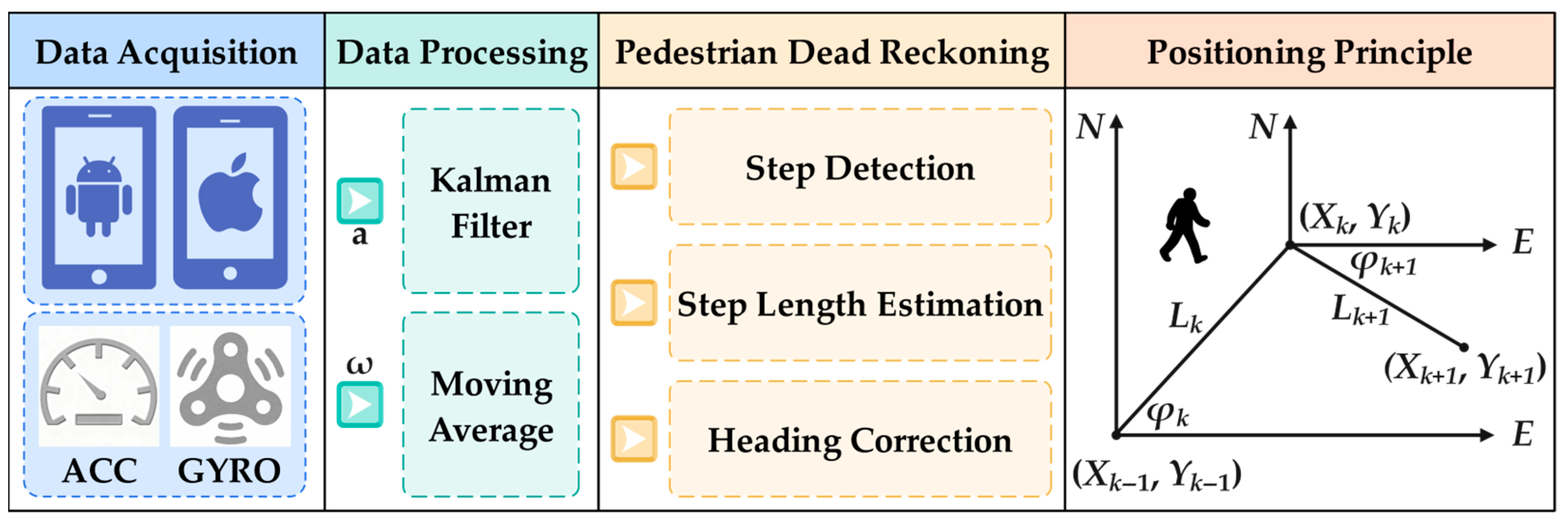 - Wang, Q.; Fu, M.; Wang, J.; Luo, H.; Sun, L.; Ma, Z.; Li, W.; Zhang, C.; Huang, R.; Li, X. Recent advances in pedestrian inertial navigation based on smartphone: A review. IEEE Sens. J. 2022, 22, 22319–22343. [Google Scholar] [CrossRef]