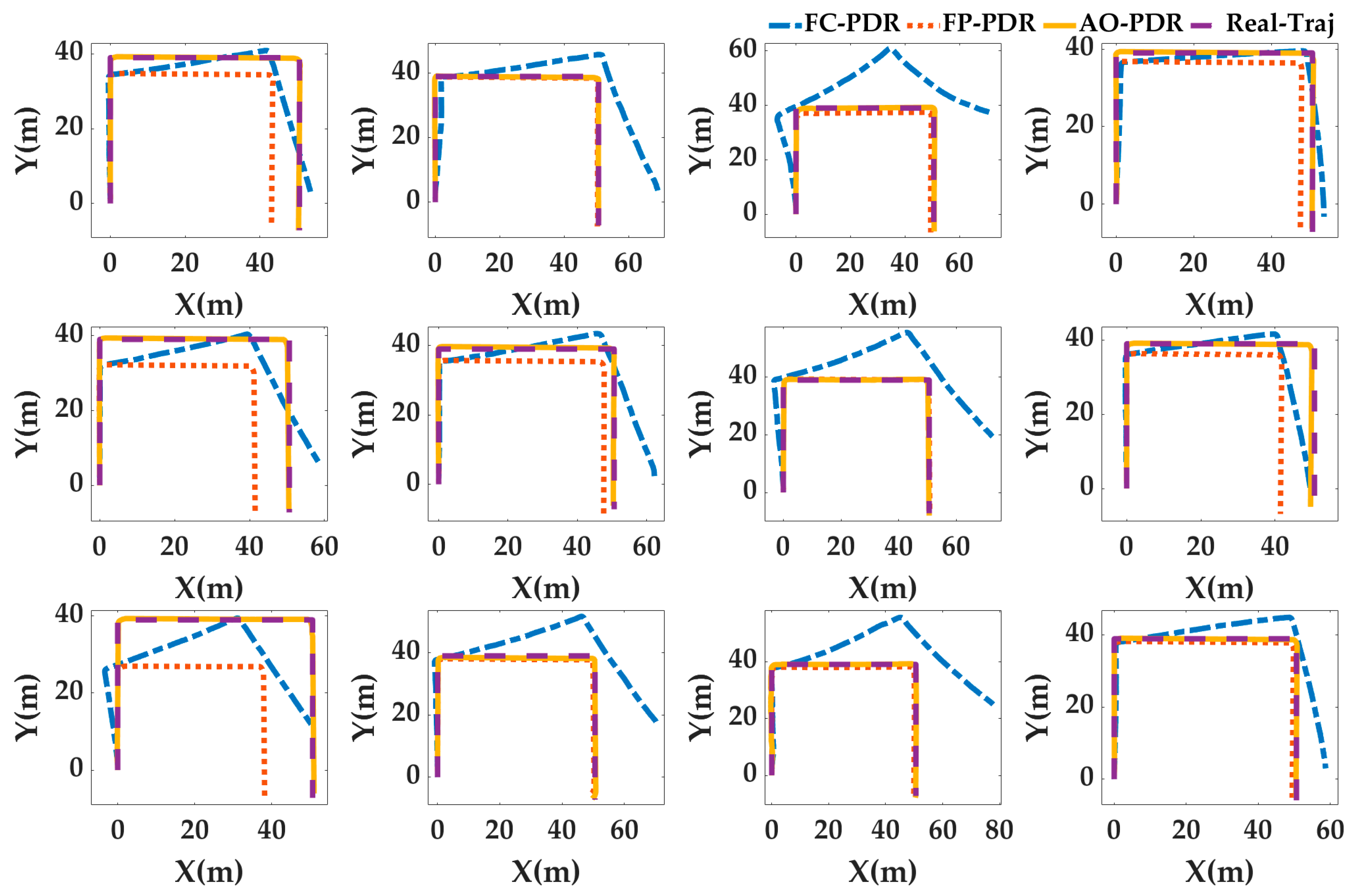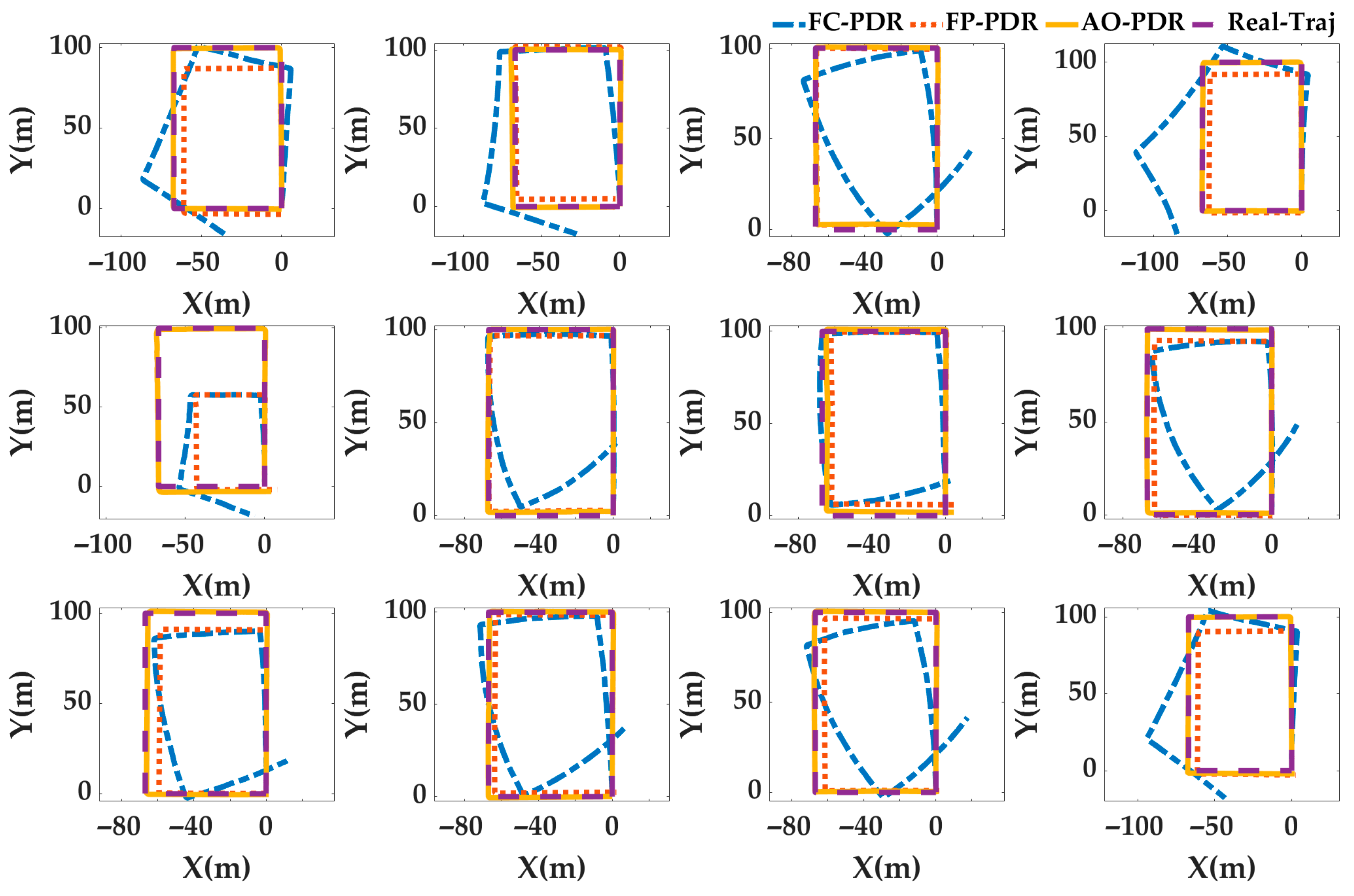| AO-PDR | Binary detection with optimal parameters | Weinberg model with optimal parameter | Based on FP-PDR, the heading correction mechanism is established according to the motion state. | Obtained by the AOA |