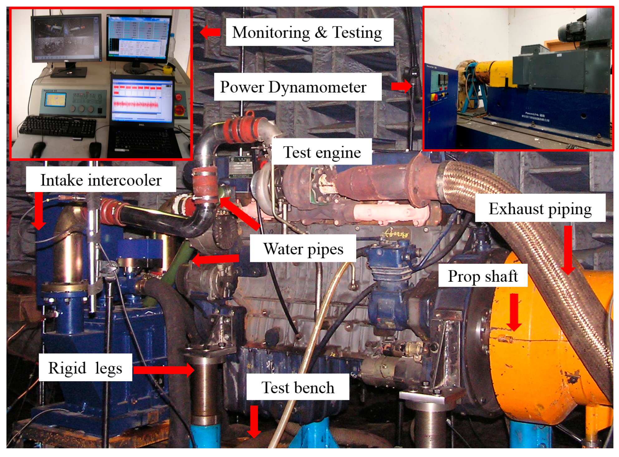 Figure 4. The diesel engine test bench system consists of two parts: the test bench and the signal acquisition system. The test bench includes the diesel engine, an electric dynamometer, a driveshaft, as well as water, oil, and air piping systems, as shown in