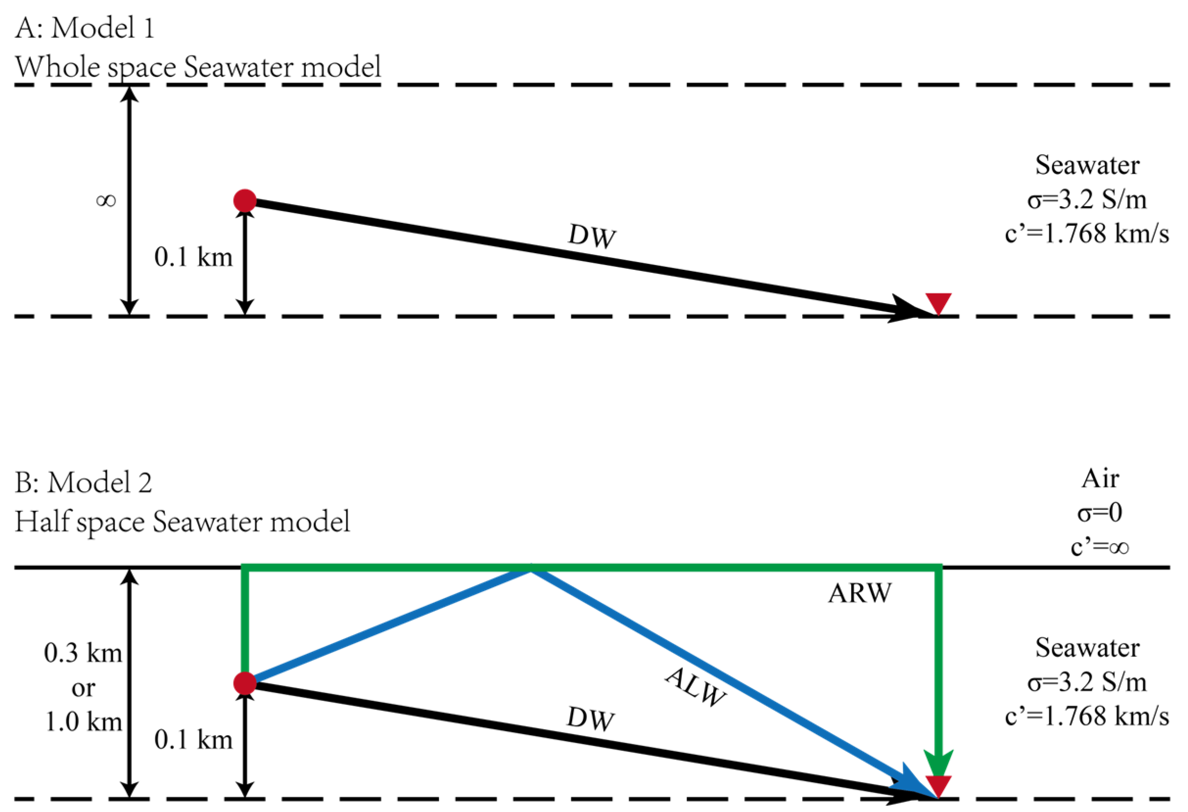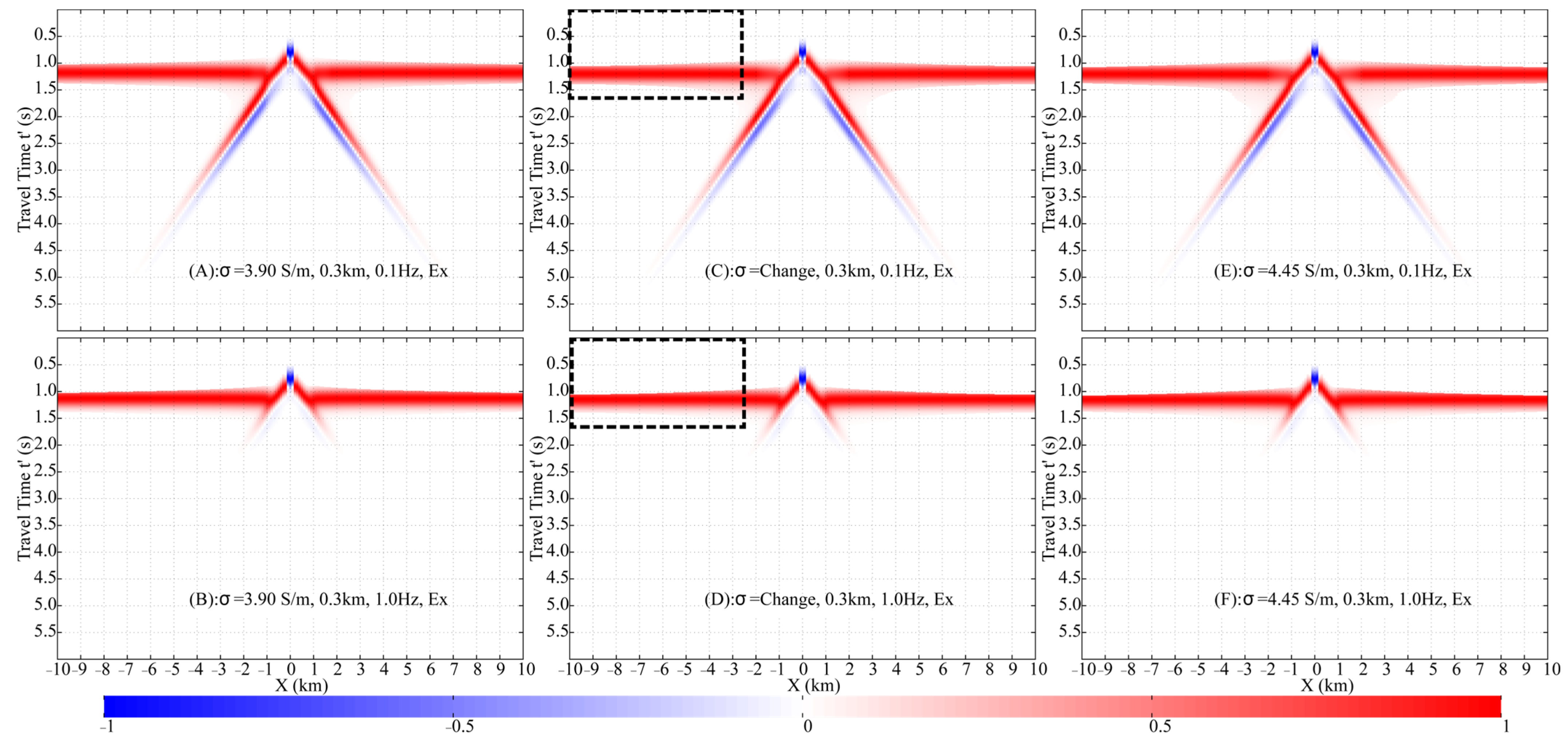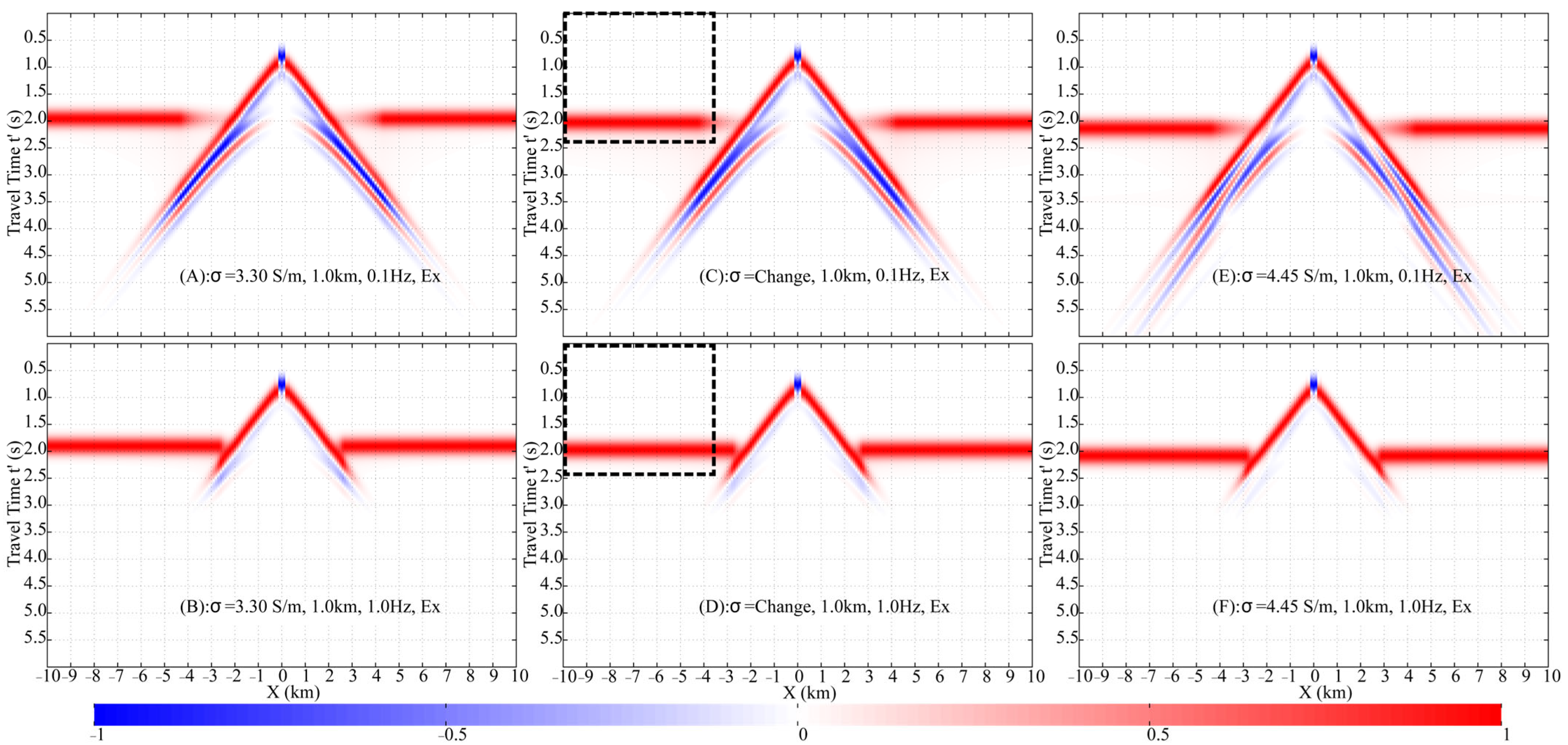 - In the fictitious wave domain, EM responses from different target layers can be distinguished and extracted based on travel time differences, enabling more detailed analysis and providing theoretical support for the development of advanced marine electromagnetic exploration sensors and systems.