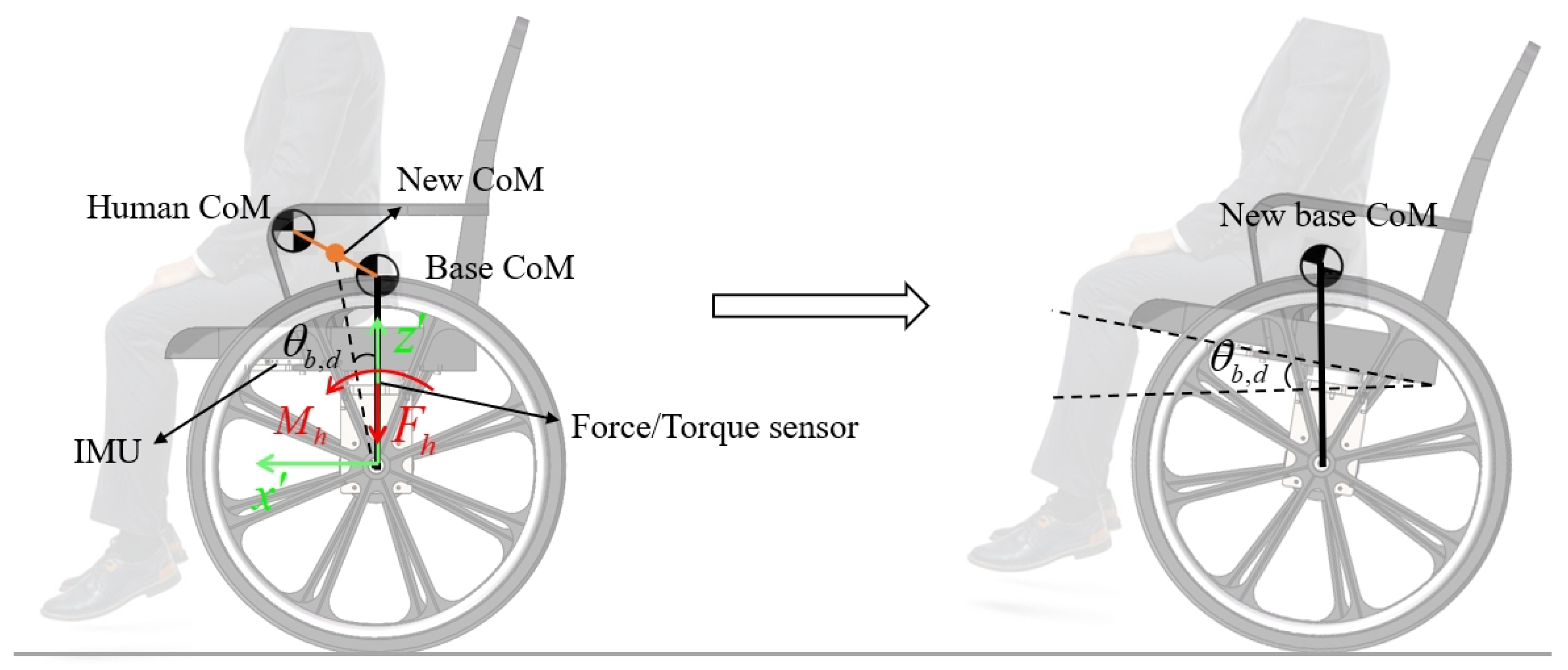 . Using the online LQR, we tested with a 55 kg passenger with a known CoM horizontal offset of 8 cm. We compared performance with and without the force/torque-sensor-based