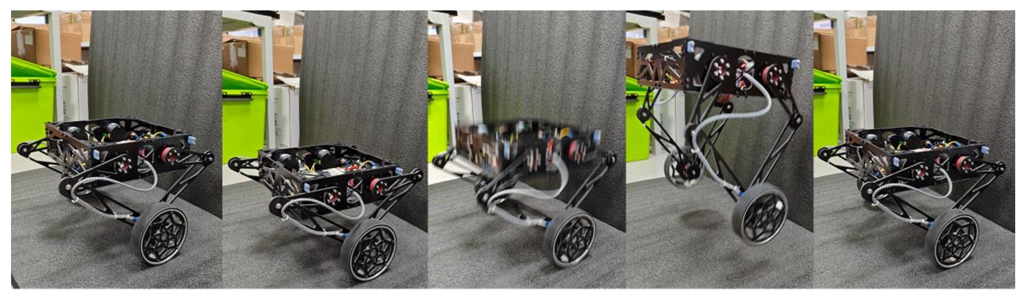 24] applied deep reinforcement learning to optimize control policies for wheel-legged robots in unstructured environments. Additionally, ref. [