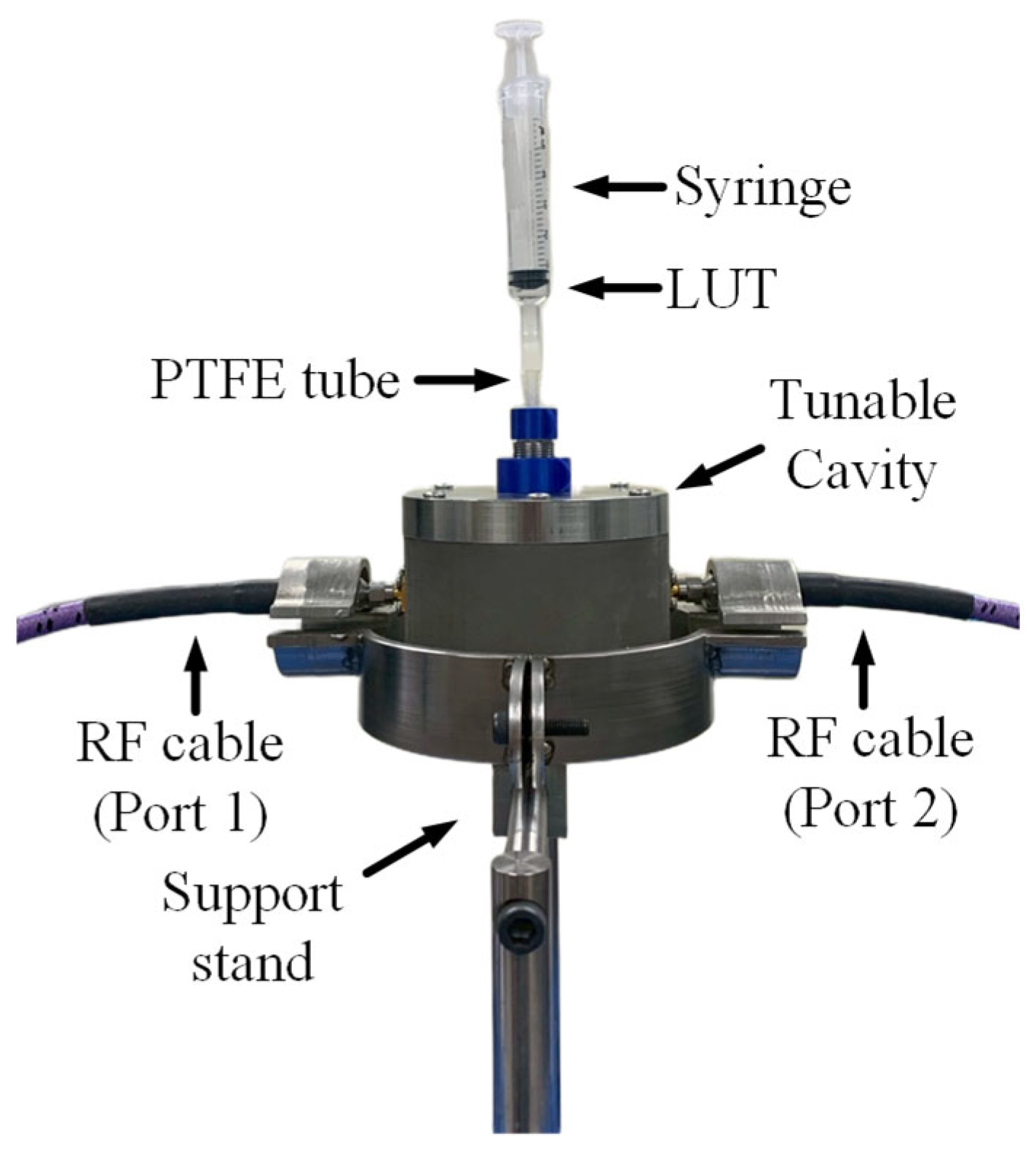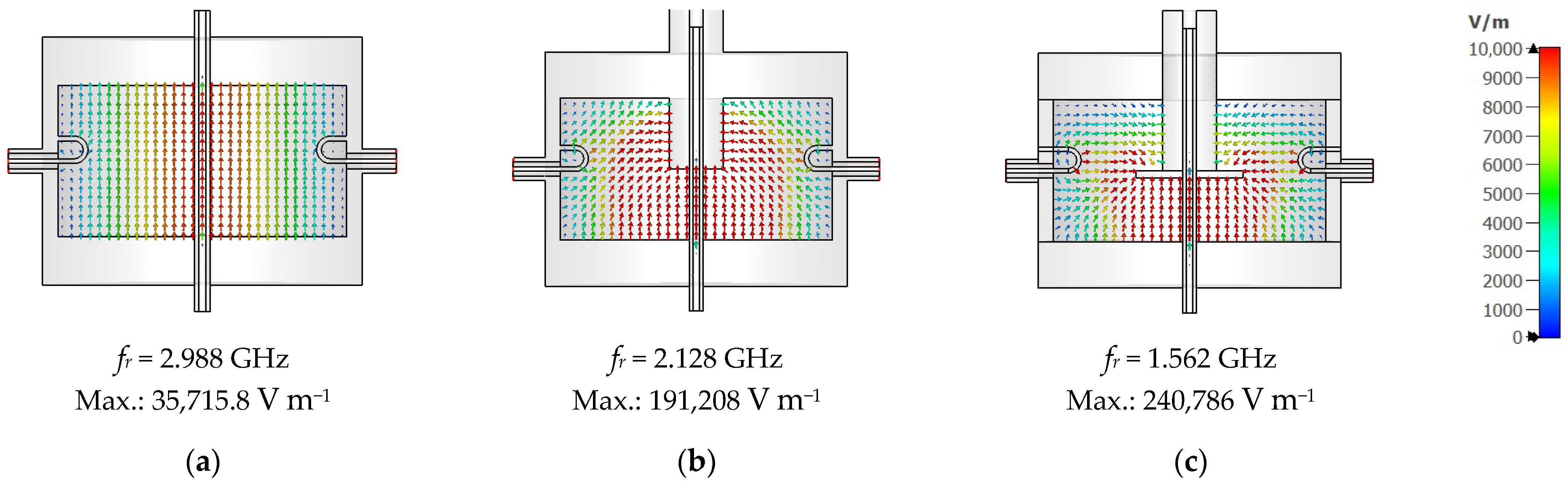 - Sangdao, C. Feasibility Study of Dielectric Measurement Using a Concentric Cylindrical Cavity. In Proceedings of the 2019 7th International Electrical Engineering Congress (iEECON), Hua Hin, Thailand, 6–8 March 2019. [Google Scholar] [CrossRef]