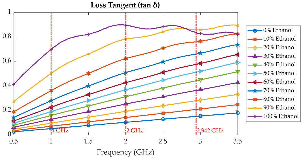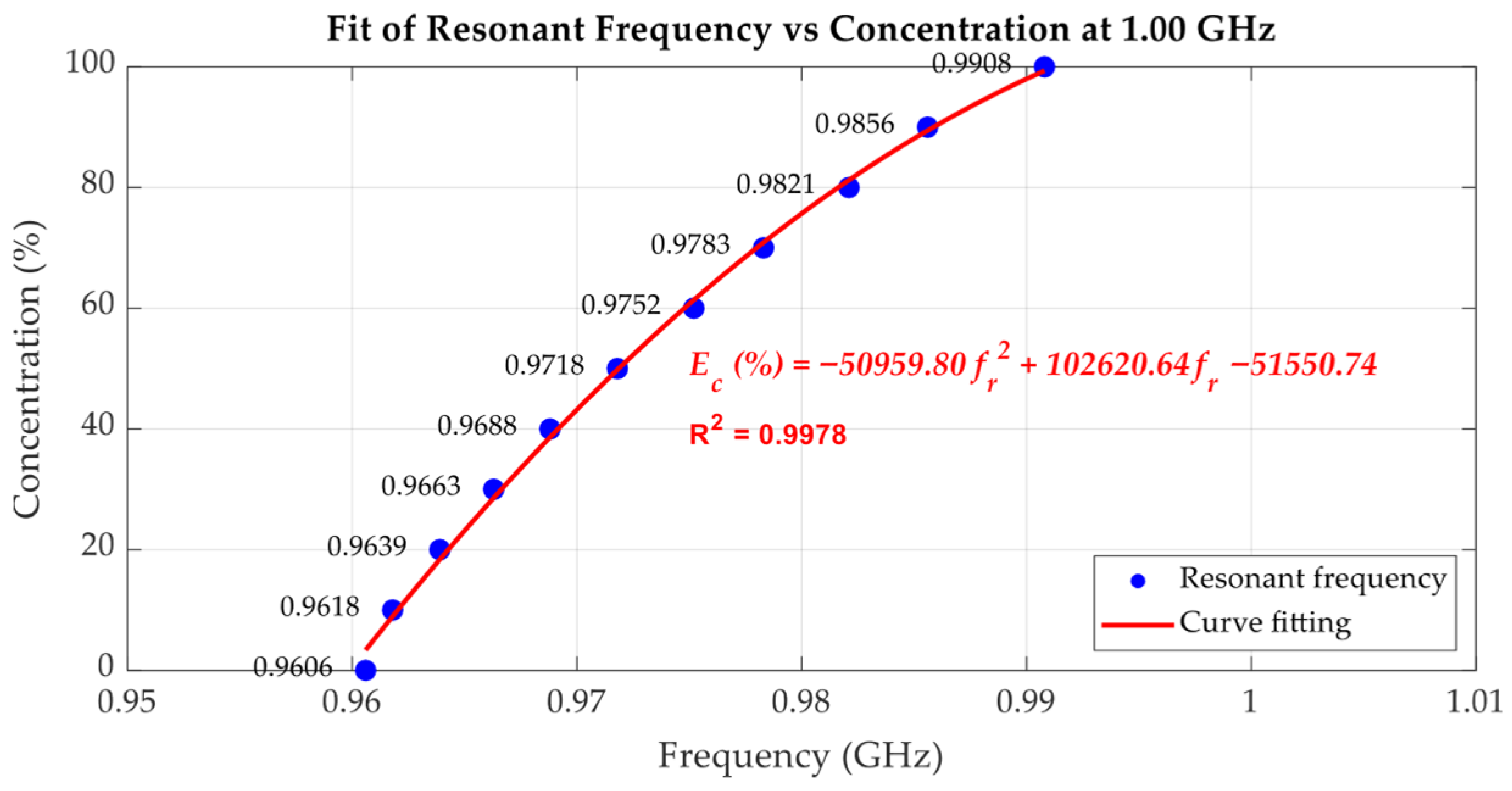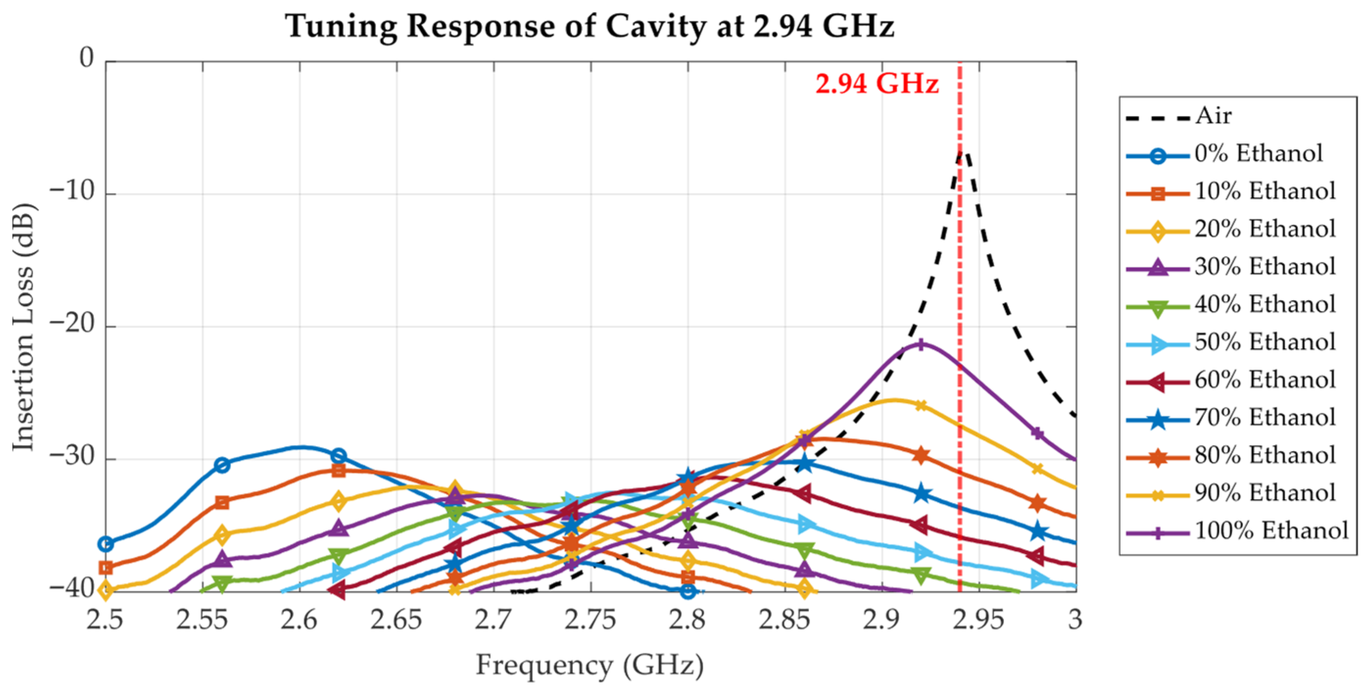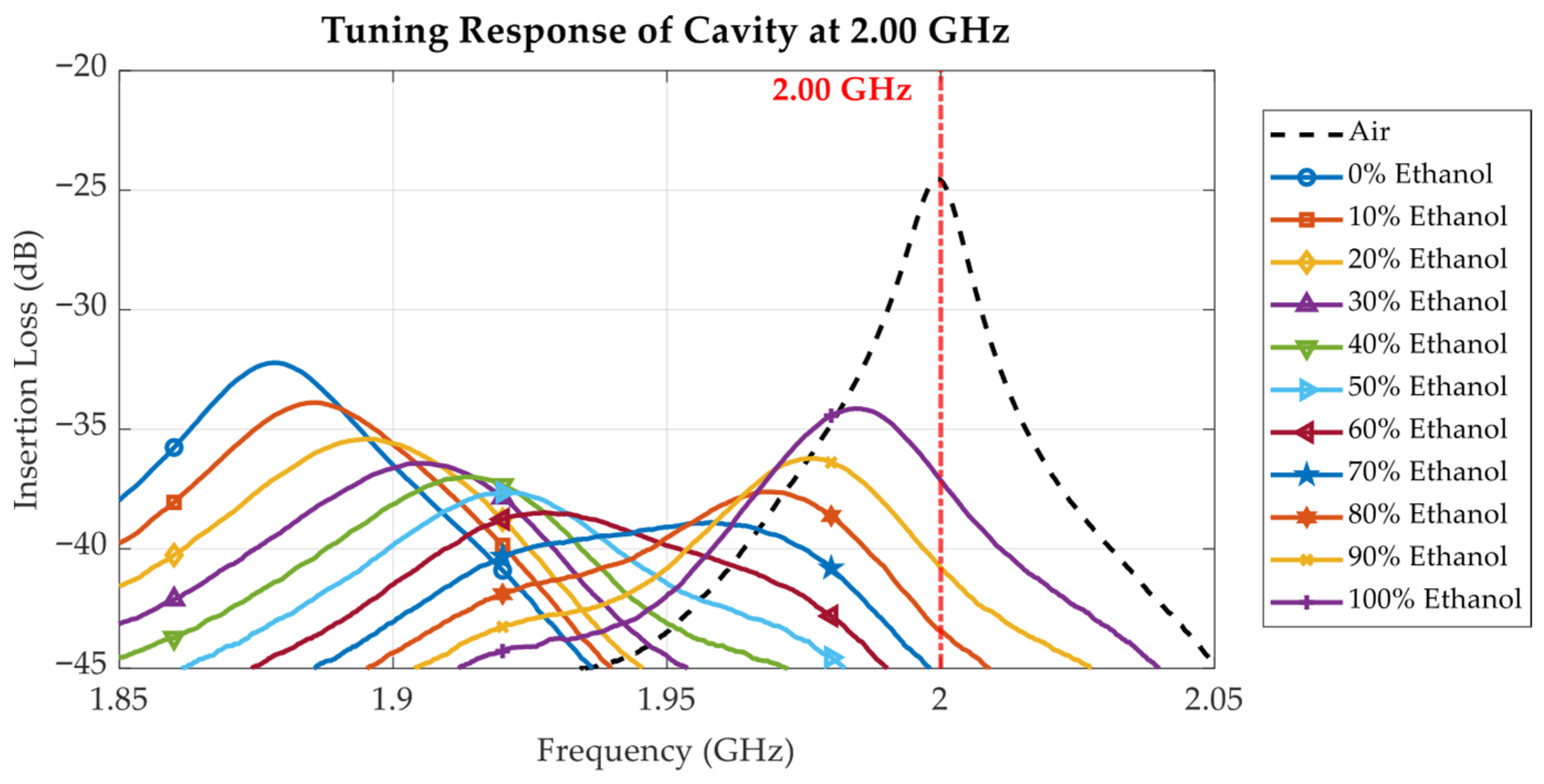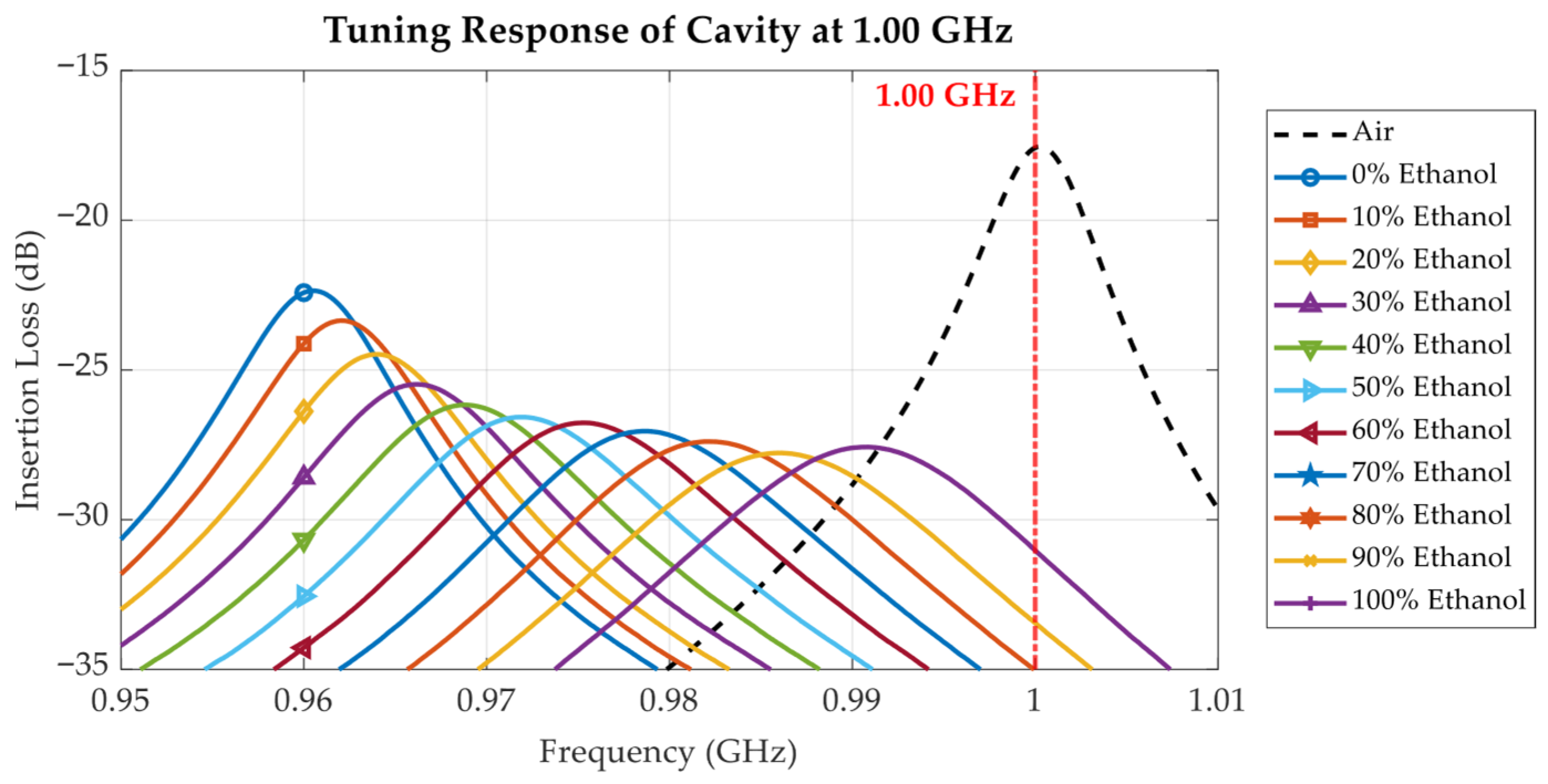 3.3. Ethanol Solution Characterization with Proposed Tunable Cavity Resonator