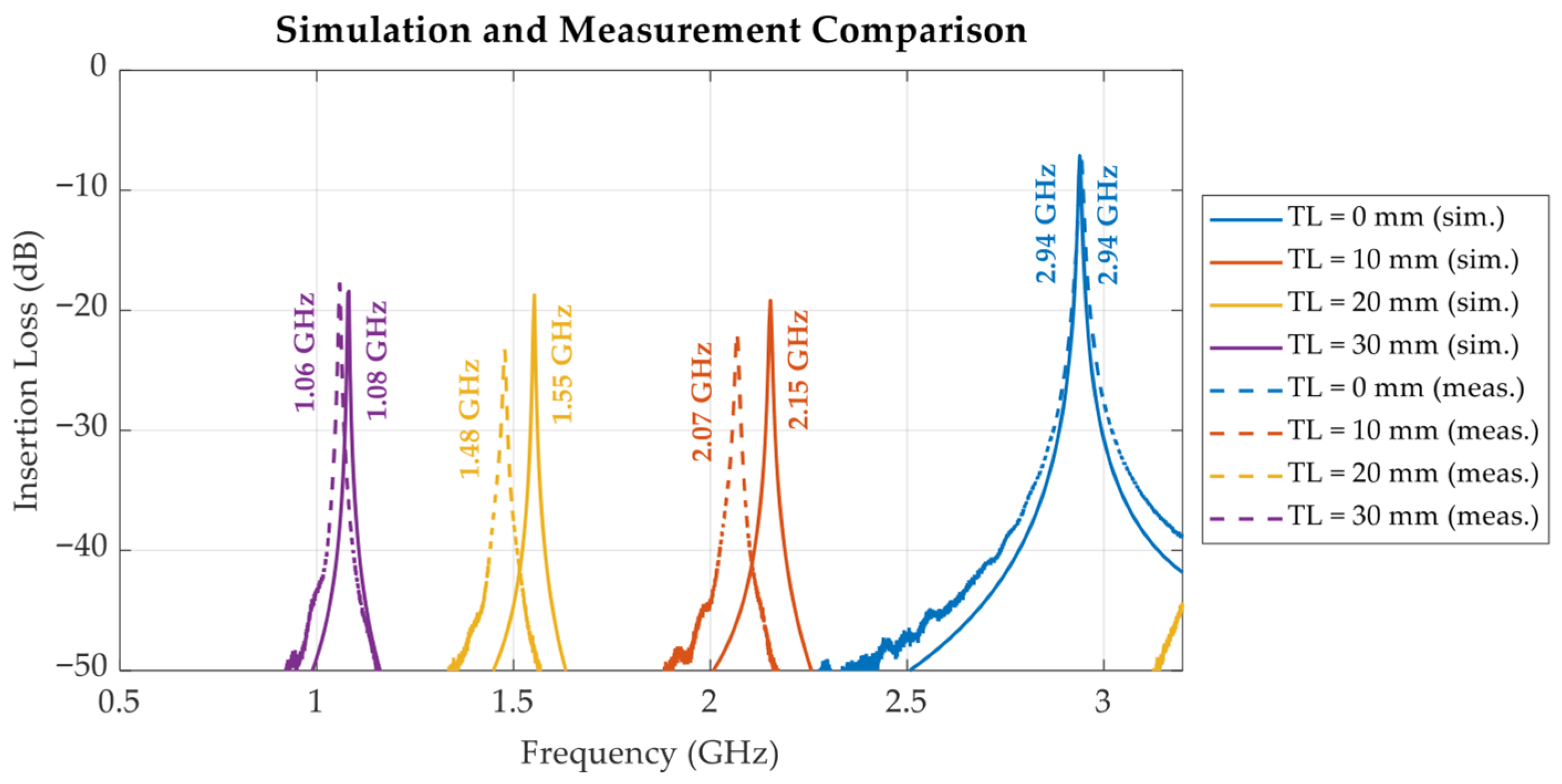 | Tuning Length | Freq. (Sim) | Q-Factor (Sim.) | Freq. (Meas.) | Q-Factor (Meas.) |
