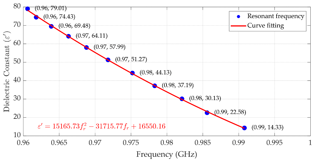 - Kanpan, P.; Khansalee, E.; Puangngernmak, N.; Chalermwisutkul, S. TM010 Mode Cylindrical Cavity for Complex Permittivity Measurement of Liquid Using Field Analysis Technique. In Proceedings of the 2012 9th International Conference on Electrical Engineering/Electronics, Computer, Telecommunications and Information Technology (ECTI-CON), Phetchaburi, Thailand, 16–18 May 2012. [Google Scholar] [CrossRef]
