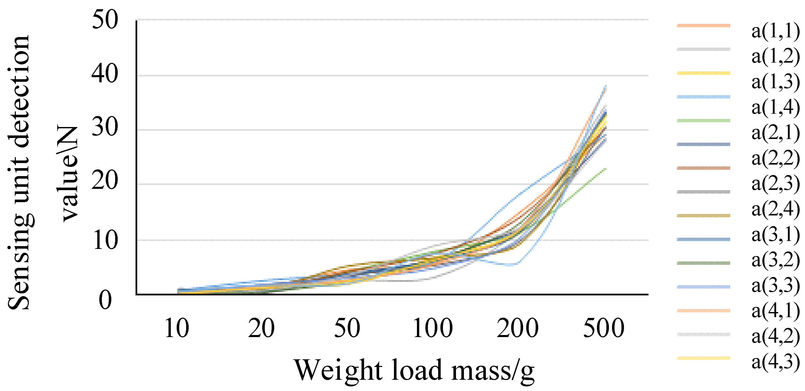 3.3. Analysis of Output and Data Correction of Flexible Array Pressure Sensor