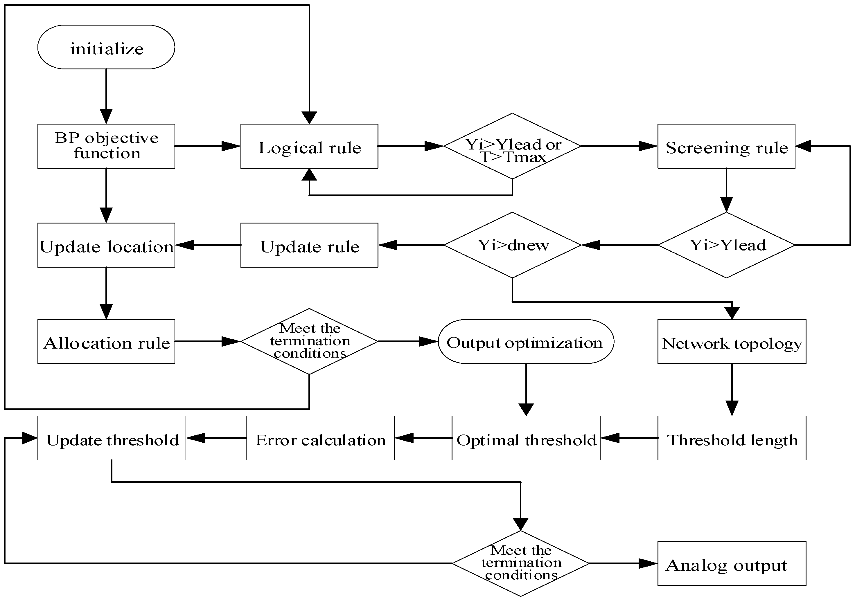 - The state of the artificial wolf represents the weights and thresholds of the BPNN. The optimal weights and thresholds are determined as initial values through information exchange and responsibility allocation among the wolves. After selecting the initial values in the previous steps, the BPNN is trained to achieve the desired prediction performance.