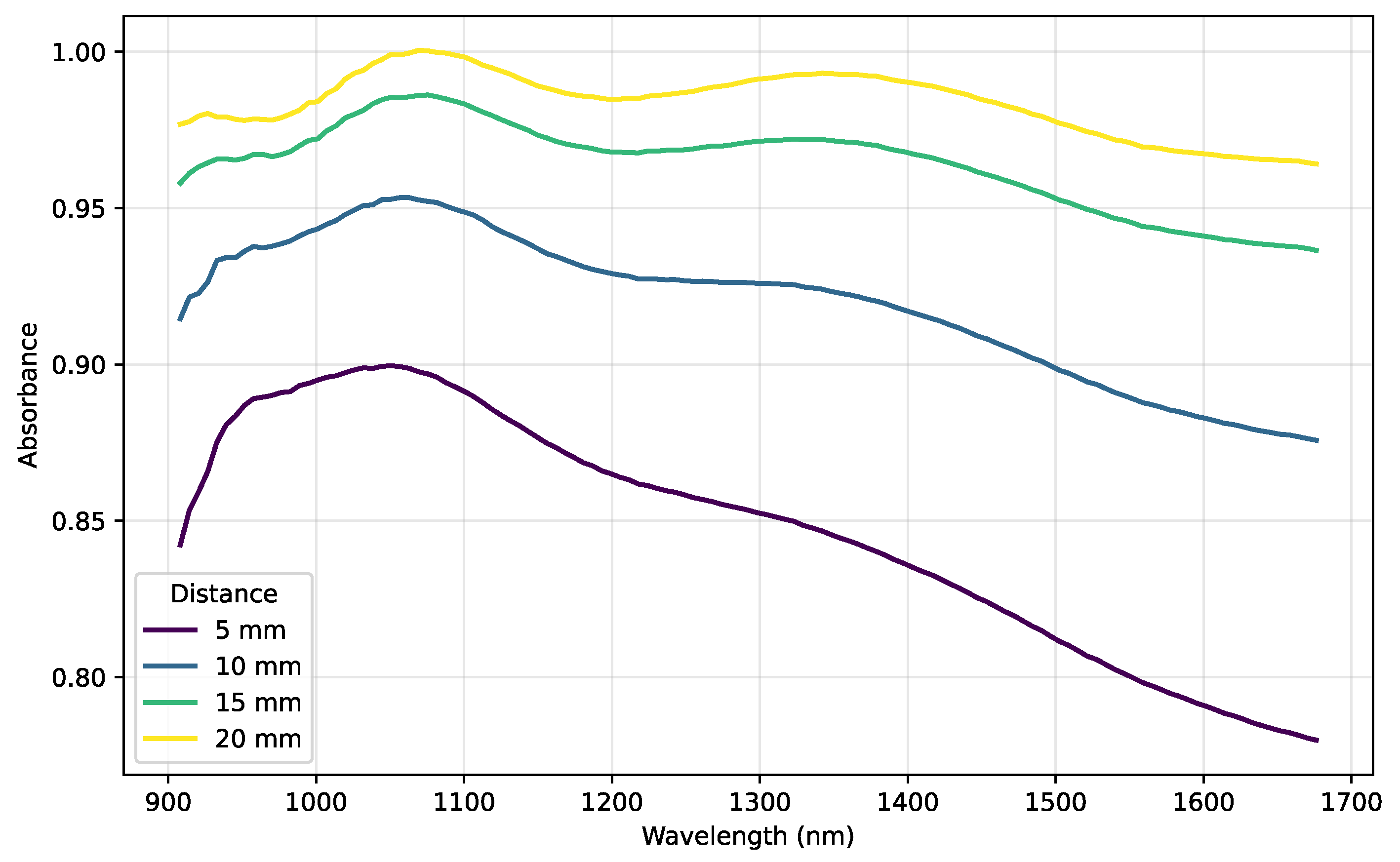 Figure 1 displays the NIR spectra of the same coal sample measured at different distances. The resulting spectral variations clearly arise from inconsistent sampling, not intrinsic sample properties, underscoring the necessity of a fixed measurement protocol for reliable data acquisition.