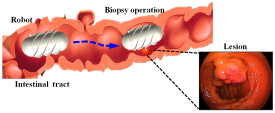 - Son, D.; Dogan, M.D.; Sitti, M. Magnetically Actuated Soft Capsule Endoscope for Fine-Needle Aspiration Biopsy. In Proceedings of the IEEE International Conference on Robotics and Automation (ICRA), Singapore, 29 May–3 June 2017; pp. 1132–1139. [Google Scholar]