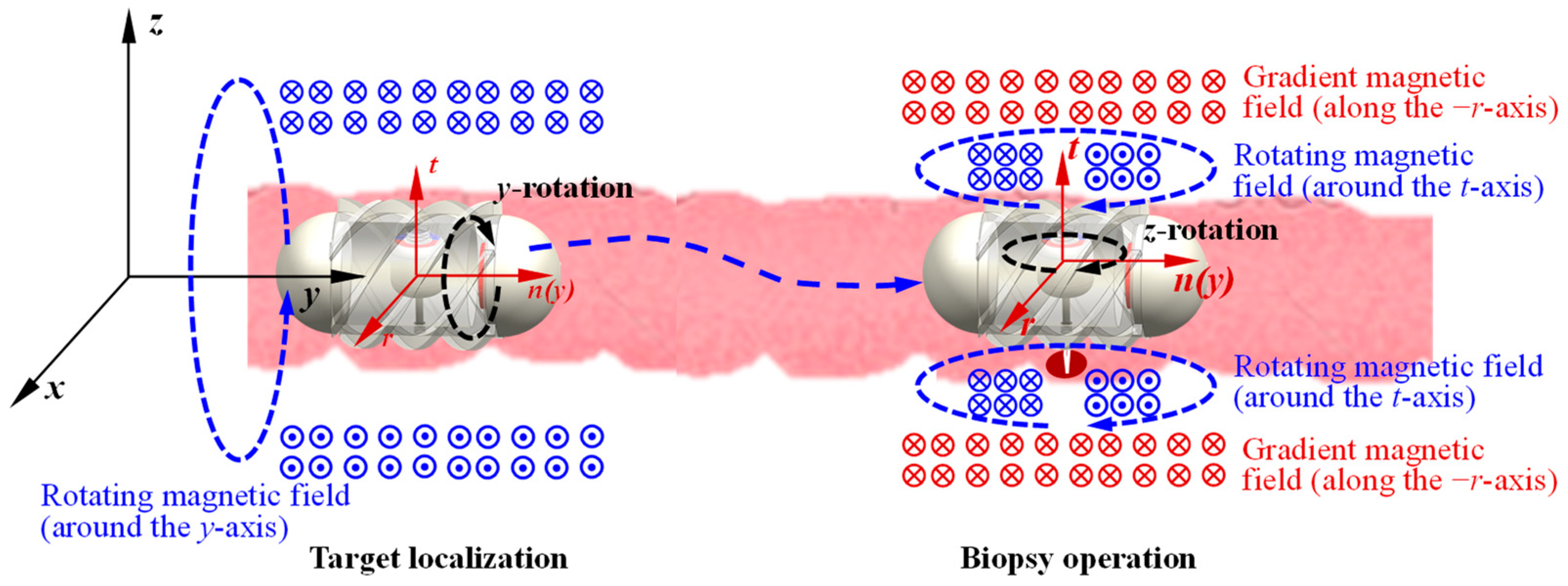 - Rashid, M.H.O.; Lin, F. Magnetically driven biopsy capsule robot with spring mechanism. Micromachines 2024, 15, 287. [Google Scholar] [CrossRef] [PubMed]