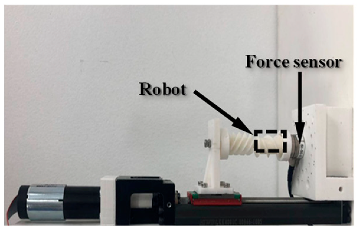 - Gao, J.; Yan, G.; He, S.; Xu, F.; Wang, Z. Design, analysis, and testing of a motor-driven capsule robot based on a sliding clamper. Robotica 2017, 35, 521–536. [Google Scholar] [CrossRef]