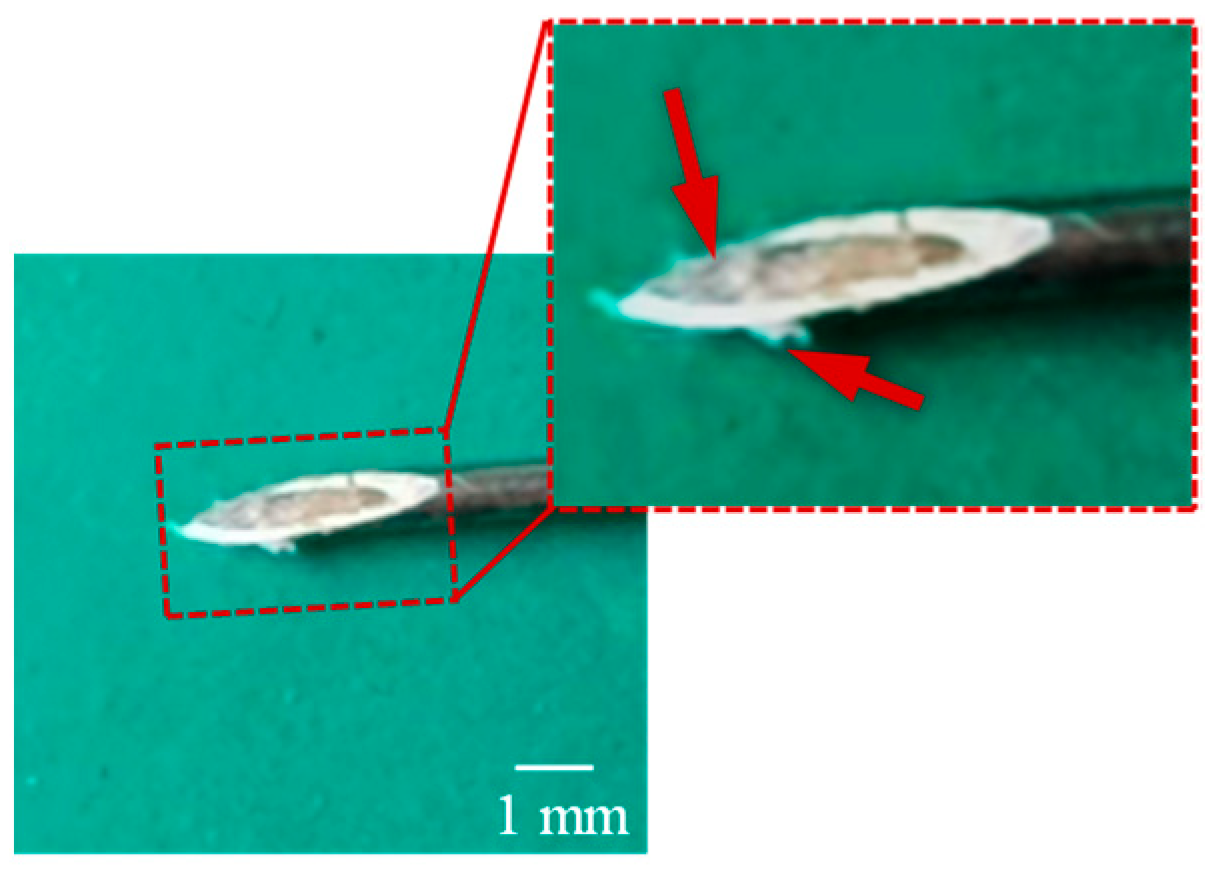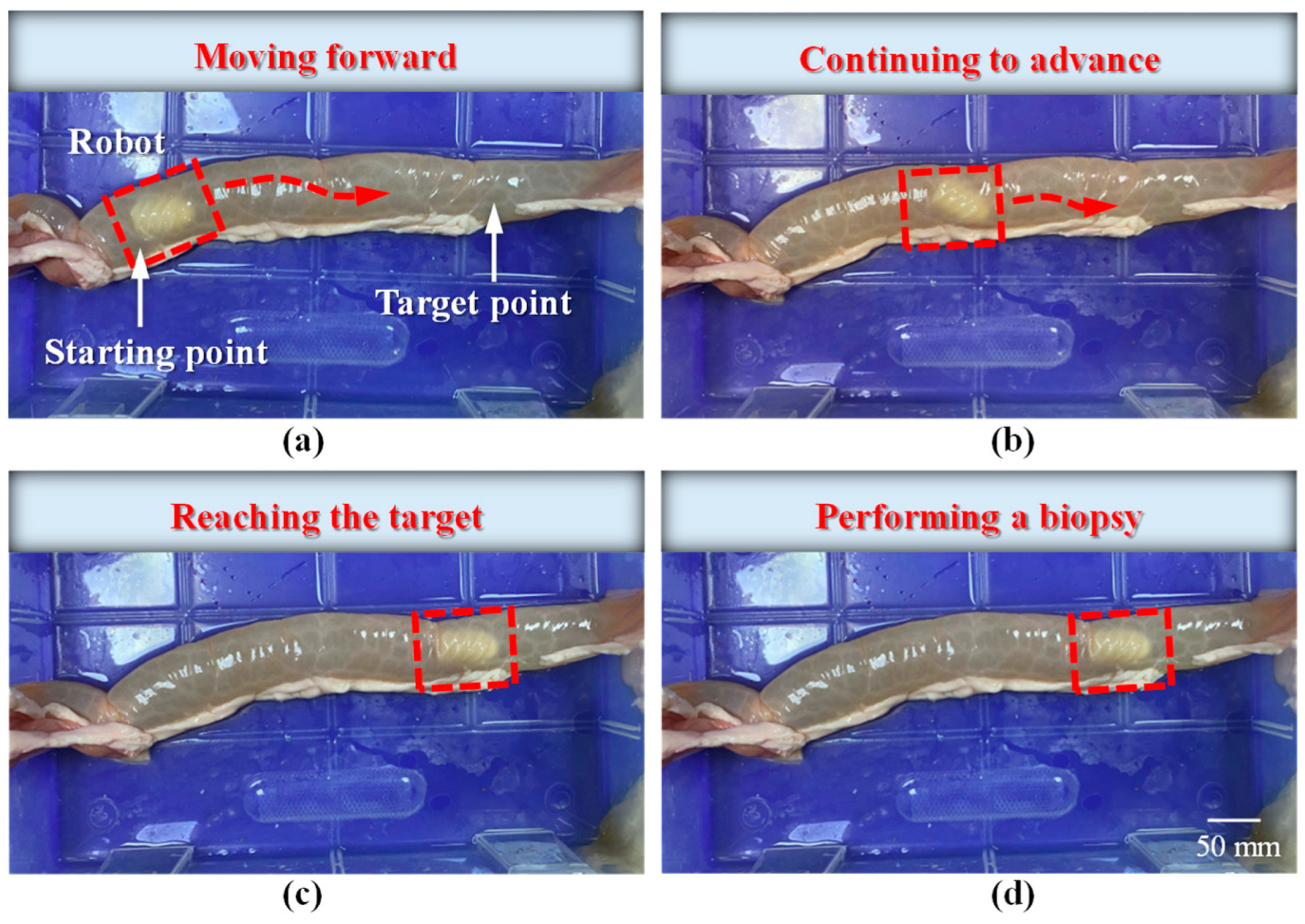 - Zhang, H.; Luo, K.; Wang, F.; Li, S.; Meng, X.; Xie, H. Development of a Magnetically-Actuated Capsule Robot for Biopsy Sampling Using SMA. J. Bionic Eng. 2025, 22, 1609–1621. [Google Scholar] [CrossRef]