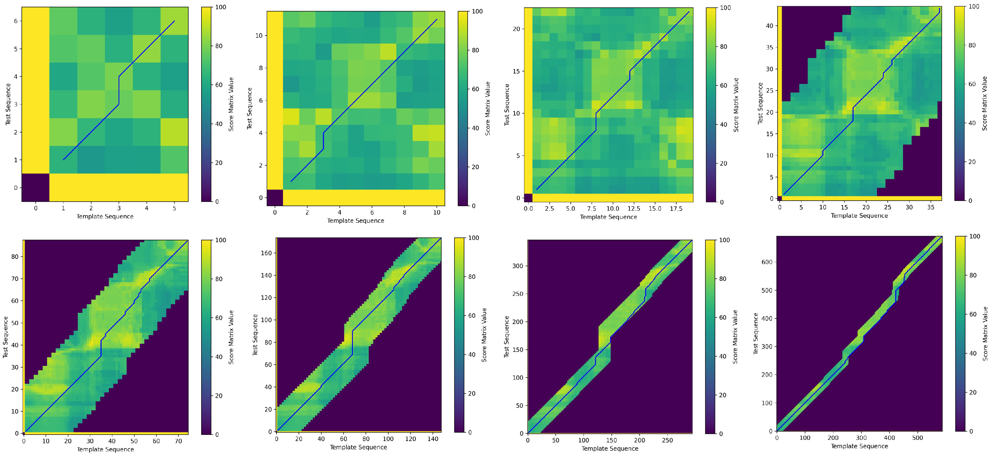 In the refinement step, the two time series are upsampled, and ACDTW updates the dynamic programming distances only within the specified window. Based on these distances, the backtracking path is recalculated. This cycle of coarsening, window computation, and refinement repeats until the full-resolution distance matrix and the final backtracking path are obtained, at which point the iteration terminates.