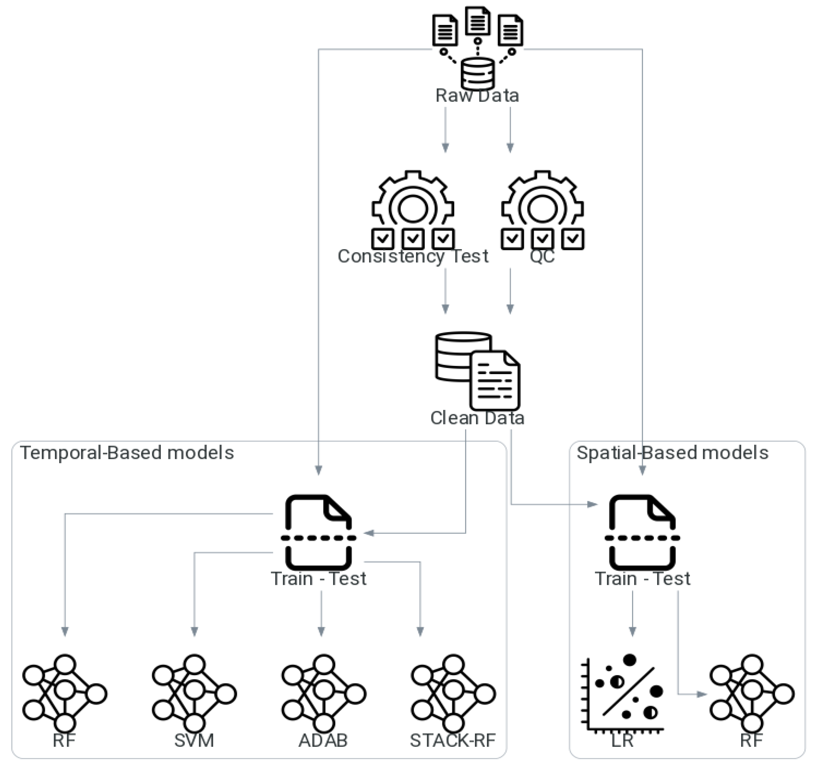 - Stacking (STACK): This advanced ensemble technique integrates the predictions of base models (SVM and RF in this study) using a meta-model to generate a final, refined prediction, leveraging the strengths of each constituent algorithm.