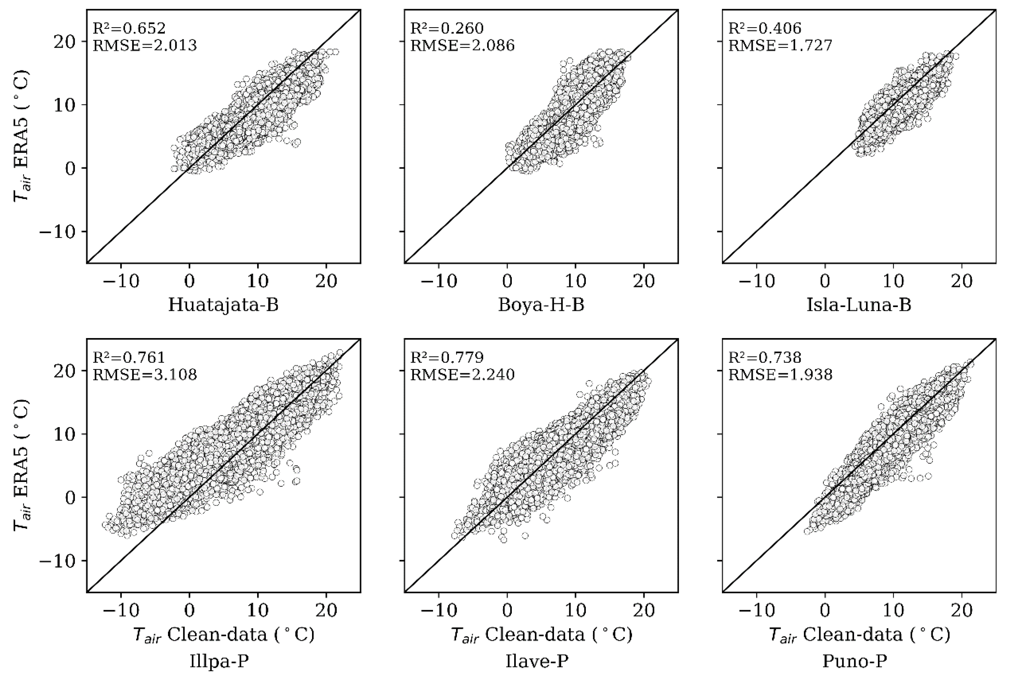 Sirpa-Poma, J.W.; Calle, J.; Uscamayta-Ferrano, E.; Molina-Carpio, J.; Satgé, F.; Cuentas Toledo, O.; Duran, R.; Pacheco Mollinedo, P.; Hussain, R.; Pillco-Zolá, R. Development of Hourly Resolution Air Temperature Across Titicaca Lake on Auxiliary ERA5 Variables and Machine Learning-Based Gap-Filling. Sensors 2025, 25, 7165. https://doi.org/10.3390/s25237165