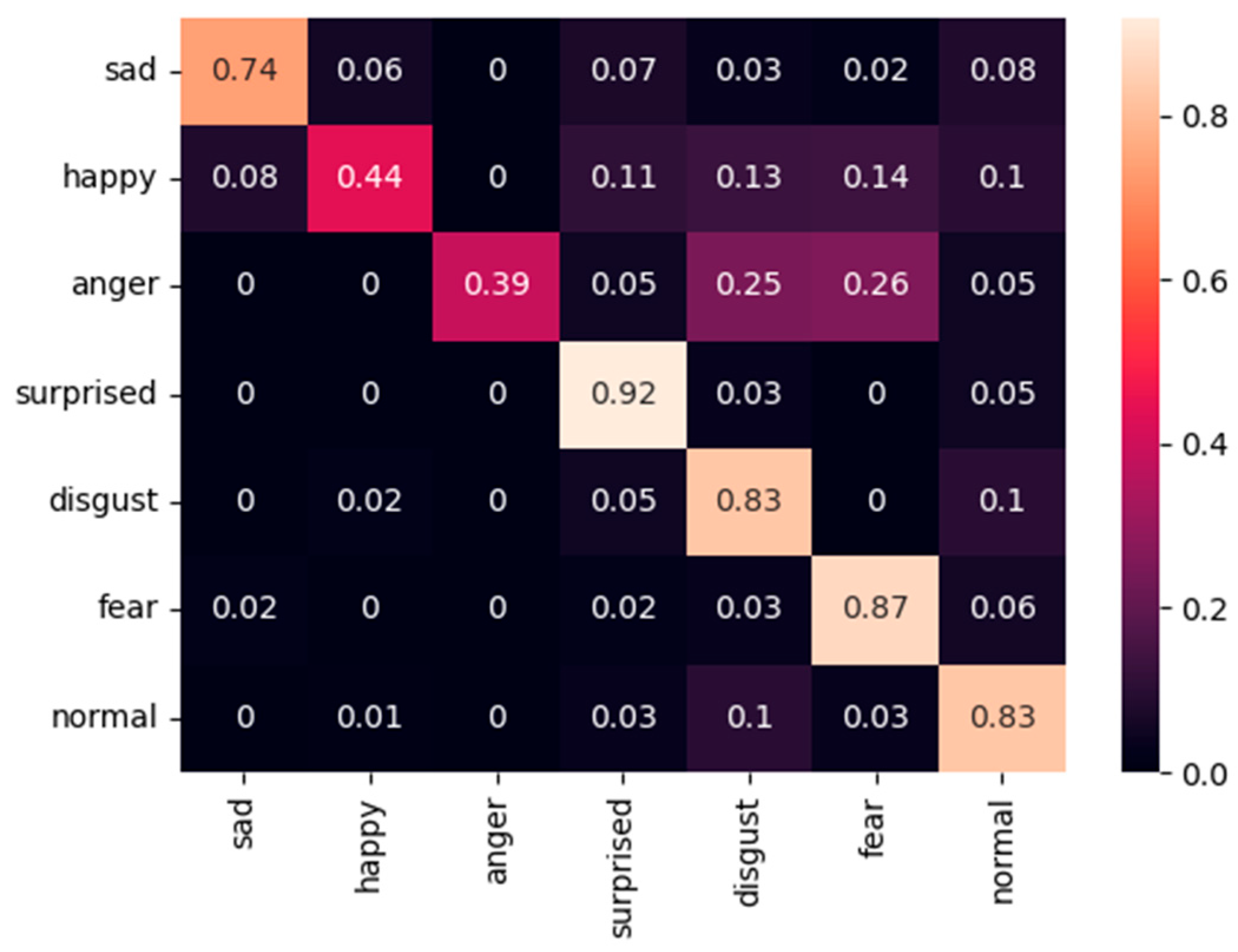 - Ngo, Q.T.; Yoon, S. Facial expression recognition based on weighted-cluster loss and deep transfer learning using a highly imbalanced dataset. Sensors 2020, 20, 2639. [Google Scholar] [CrossRef]