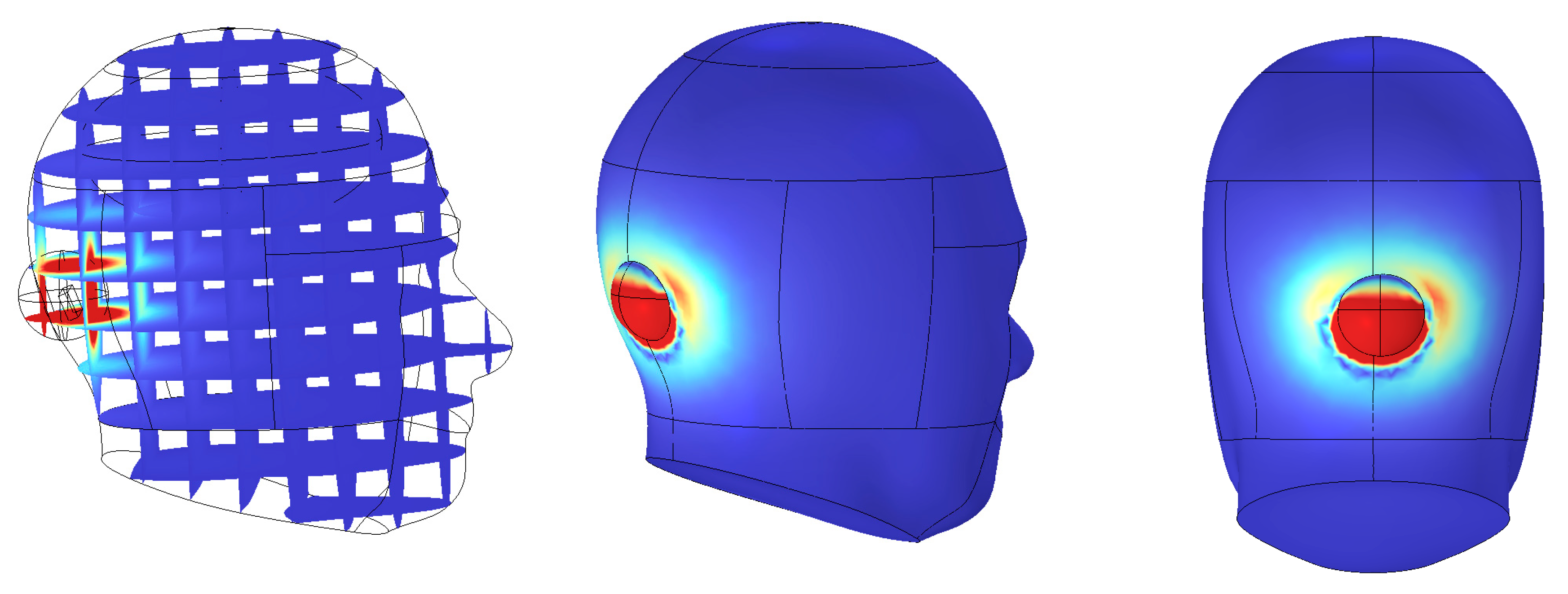 As a result, curved-surface domains provide boundary conditions that more accurately reflect the directional nature of wave propagation. Second, curved boundaries minimize edge reflections and scattering, and better capture the isotropic distribution of electromagnetic energy within tissue. This enables more realistic modeling of field behavior in complex biological environments. Third, such averaging schemes reduce boundary-related numerical artifacts and field concentration effects. This leads to enhanced simulation accuracy and repeatability, particularly in regions near the implantable device where tissue heterogeneity and irregular boundaries are present. Compared to cuboid-based averaging cells, hemispherical mass-averaging provides more reliable and precise outcomes in anatomically realistic simulations.