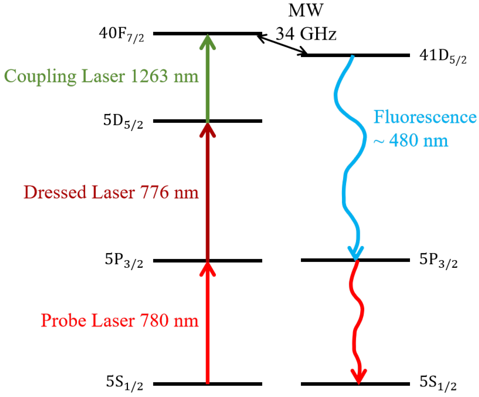 Zhang, J.; Liu, Y.; Liu, Y.; Xu, Z.; Jia, F.; Wang, J.; Meng, F.; Wang, Q.; Zhang, J.; Zhong, Z. Advancing Three-Photon-Excited Rydberg RF Sensing: Fluorescence Readout for Wide-Dynamic-Range Characterization and Spatial Resolution Beyond Transmission. Sensors 2025, 25, 7185. https://doi.org/10.3390/s25237185