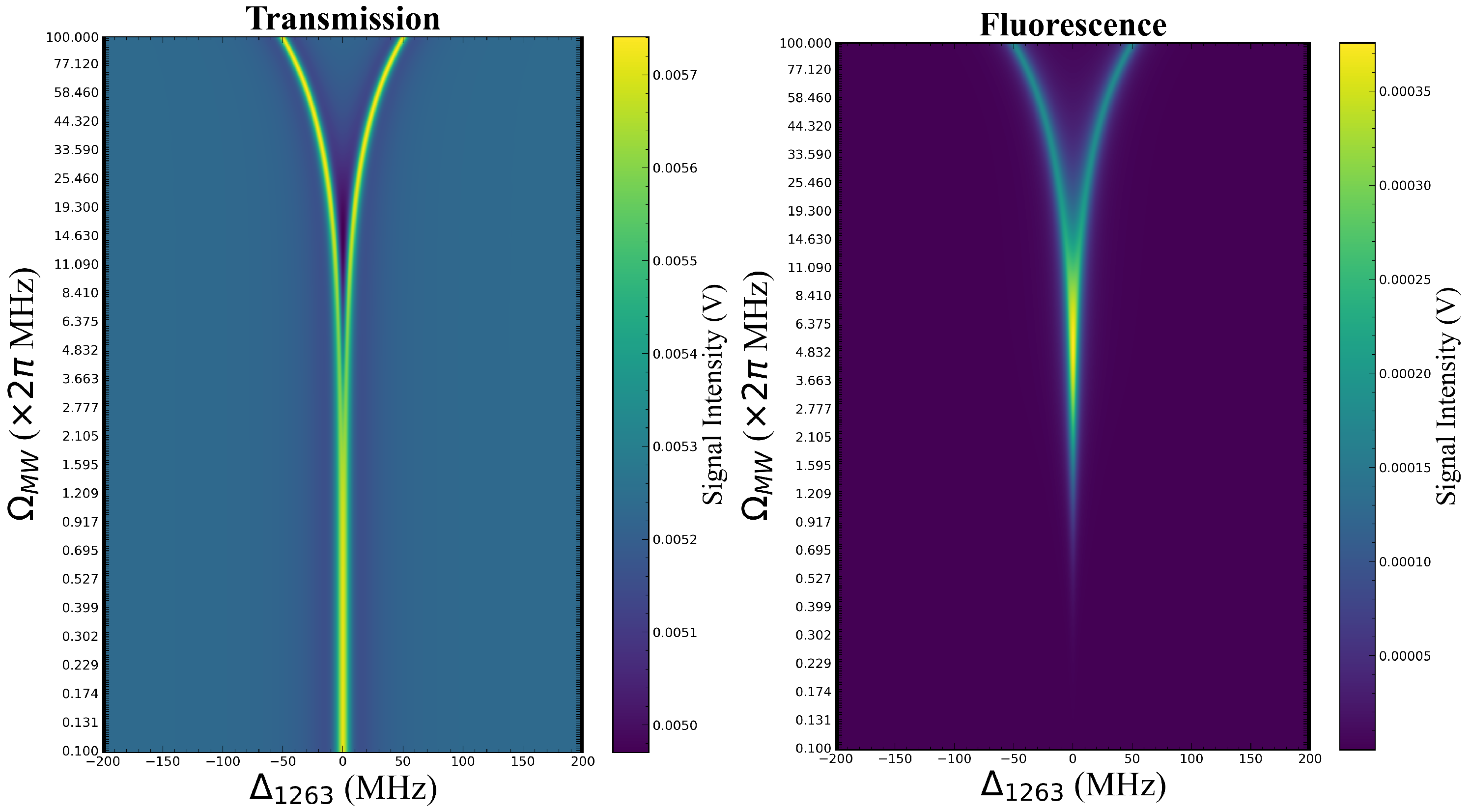 - Prajapati, N.; Berweger, S.; Rotunno, A.P.; Artusio-Glimpse, A.B.; Schlossberger, N.; Shylla, D.; Watterson, W.J.; Simons, M.T.; LaMantia, D.; Norrgard, E.B.; et al. Investigation of Fluorescence versus Transmission Readout for Three-Photon Rydberg Excitation Used in Electrometry. AVS Quantum Sci. 2024, 6, 034401. [Google Scholar] [CrossRef]