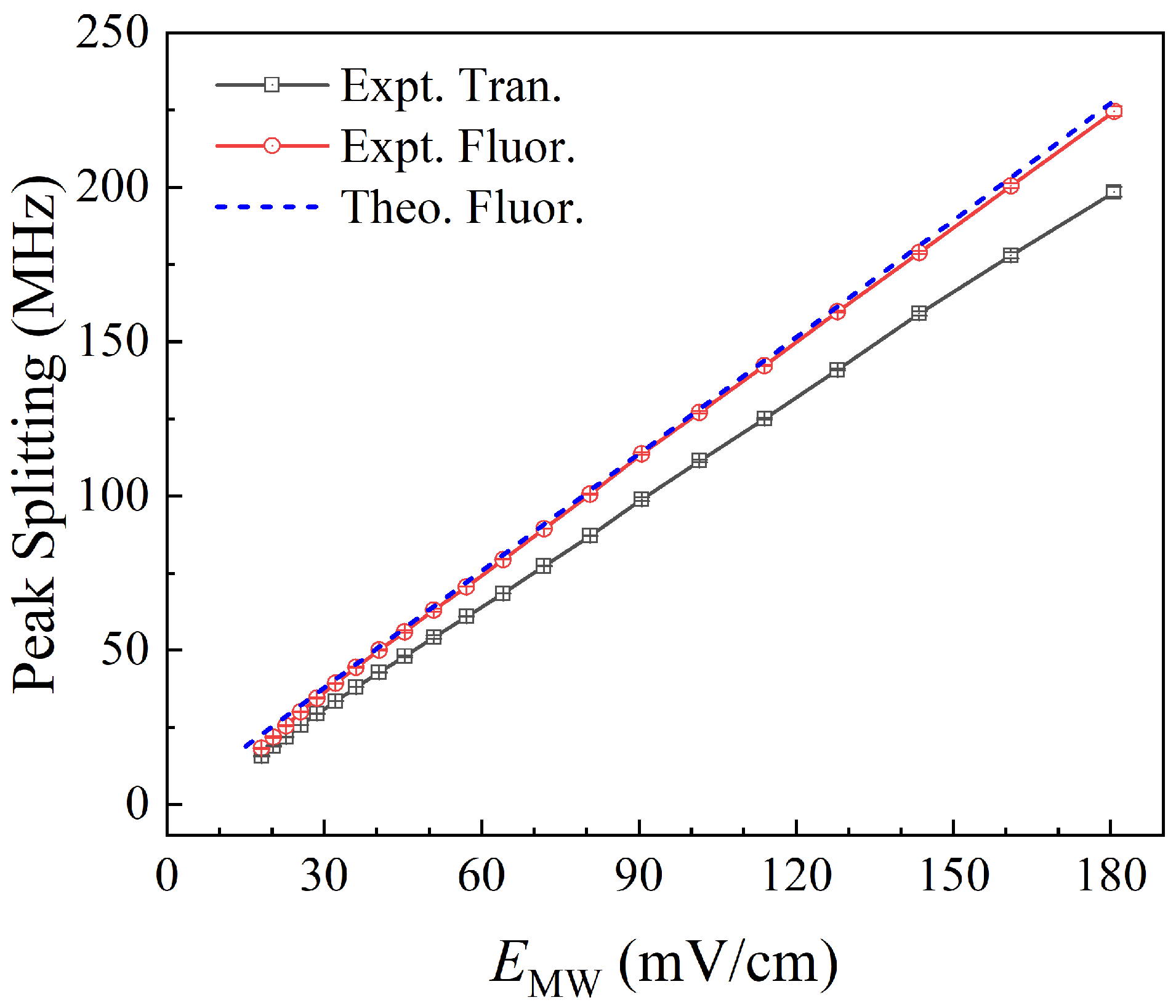 - Zhou, F.; Jia, F.D.; Liu, X.B.; Zhang, J.; Xie, F.; Zhong, Z.P. Measurement of Microwave Electric Field Based on Electromagnetically Induced Transparency by Using Cold Rydberg Atoms. Acta Phys. Sin. 2023, 72, 045204. [Google Scholar] [CrossRef]