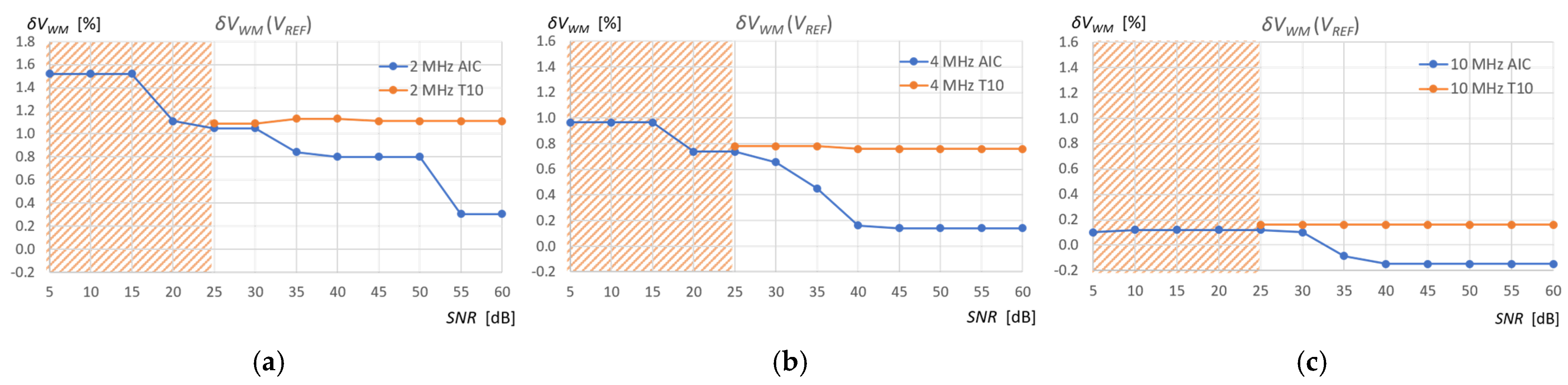 VREF (Equation (12)) depending on the SNR of the measurement signal (see