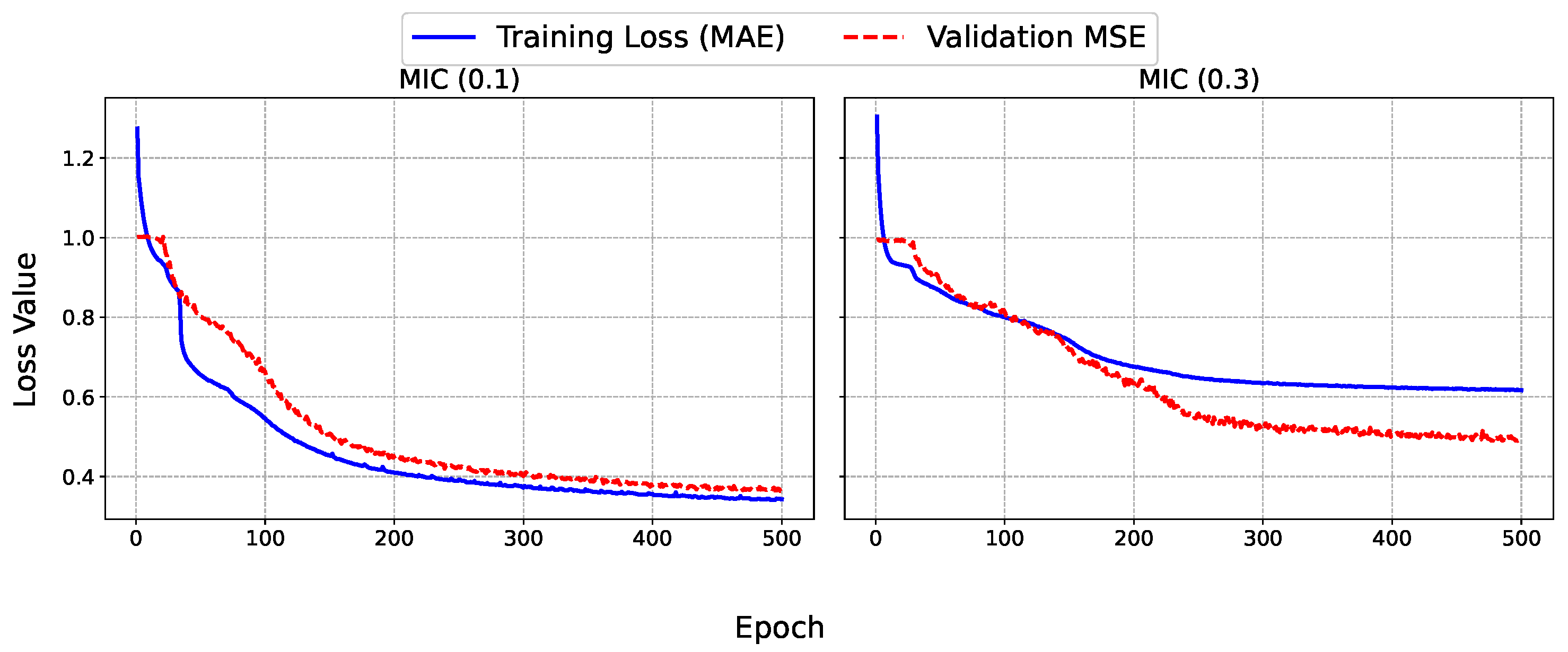 Overall, these dynamics confirm the model robustness, with early stopping mechanisms (patience = 50) effectively preventing unnecessary epochs while ensuring generalizable imputations.